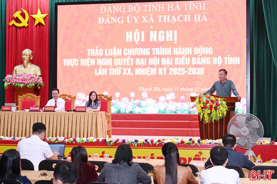 Sôi nổi, dân chủ cũng là không khí diễn ra tại hội nghị thảo luận dự thảo chương trình hành động thực hiện Nghị quyết Đại hội Đảng bộ tỉnh lần thứ XX do Đảng ủy xã Thạch Hà tổ chức với sự tham gia của cán bộ cốt cán toàn xã, từ lãnh đạo các các ban, phòng, ngành, đoàn thể đến bí thư, trưởng thôn trên địa bàn.