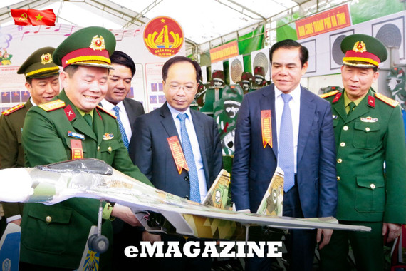 Lãnh đạo tỉnh Hà Tĩnh tham quan mô hình học cụ trong lễ ra quân huấn luyện năm 2025.