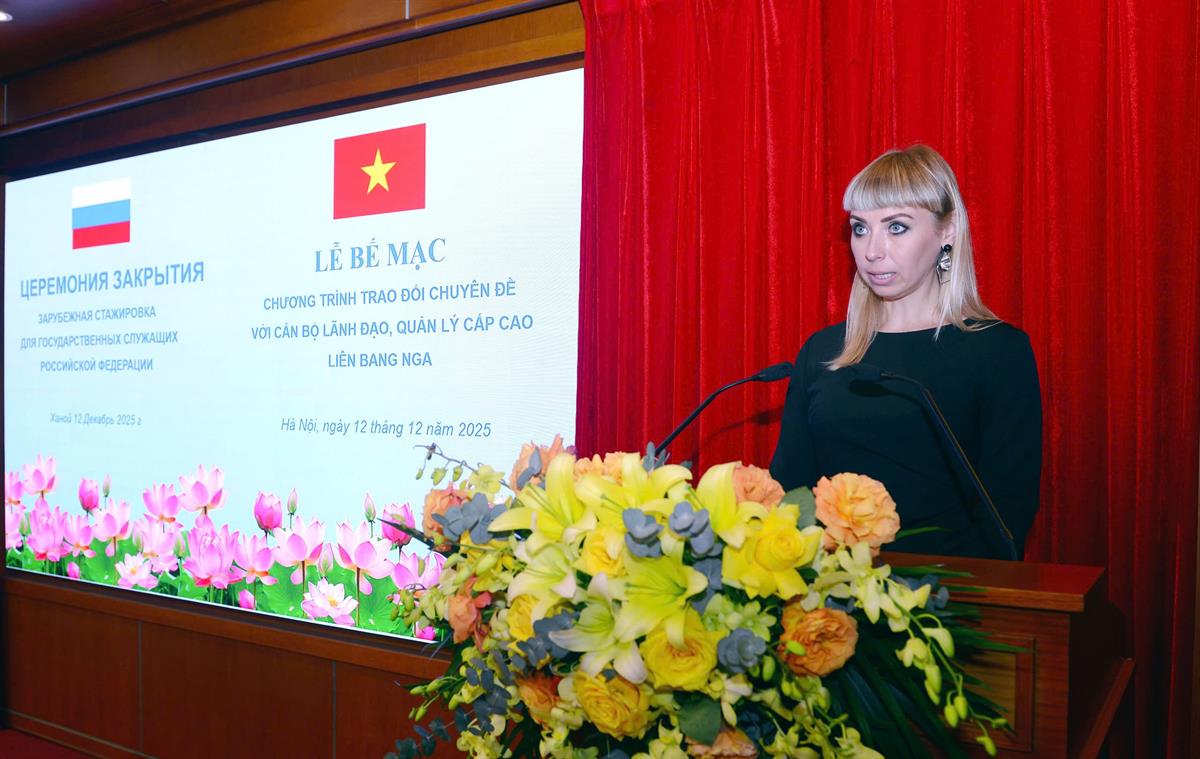 Phát biểu tại Lễ bế mạc, bà Natalia Shafinskaia, Vụ trưởng Vụ Hợp tác quốc tế, Học viện Tổng thống Nga bày tỏ sự trân trọng và đánh giá cao ý nghĩa của Chương trình nghiên cứu, khảo sát, trao đổi chuyên đề dành cho đội ngũ cán bộ lãnh đạo, quản lý cấp cao của Liên bang Nga được tổ chức tại Học viện Chính trị quốc gia Hồ Chí Minh.