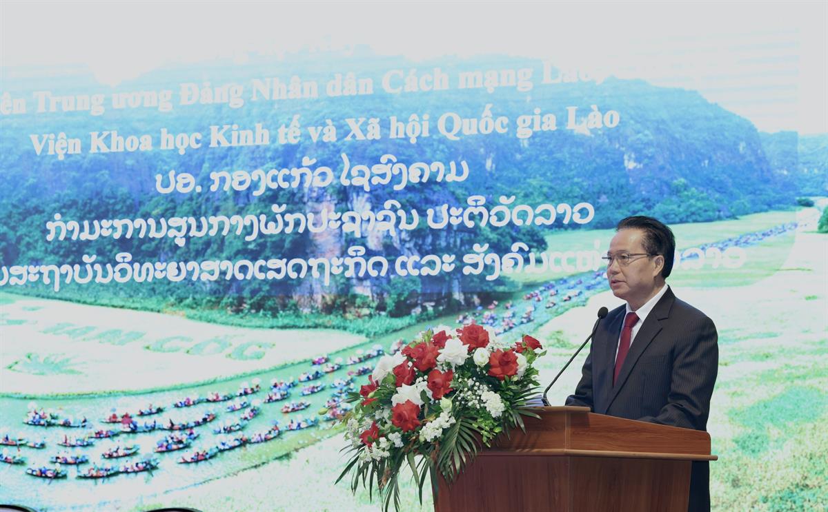 Cùng tham dự có PGS Phouvong Ounkhamsen, Uỷ viên Trung ương Đảng Nhân dân Cách mạng Lào, Giám đốc Học viện Chính trị và Hành chính quốc gia Lào; TS Kongkeo Xaysongkham, Uỷ viên Trung ương Đảng Nhân dân Cách mạng Lào, Chủ tịch Viện Khoa học Kinh tế và Xã hội quốc gia Lào; TS Phan Chí Hiếu, Chủ tịch Viện Hàn lâm Khoa học xã hội Việt Nam; TS Phạm Quang Ngọc, Phó Bí thư Tỉnh uỷ, Chủ tịch UBND tỉnh Ninh Bình; lãnh đạo các sở, ban, ngành tỉnh Ninh Bình; 150 đại biểu là các nhà khoa học, chuyên gia, nhà quản lý, doanh nghiệp Việt Nam và Lào đến từ bốn đơn vị chủ trì Hội thảo và các địa phương hai nước.