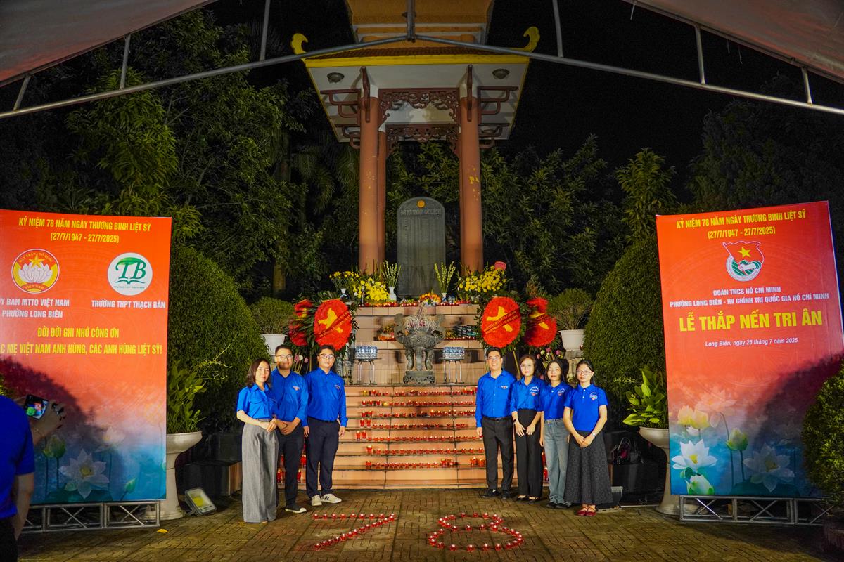 *Tối cùng ngày, thực hiện chuỗi hoạt động phối hợp tổ chức nhân kỷ niệm 78 năm Ngày Thương binh - Liệt sỹ (27/7/1947 - 27/7/2025), Đoàn TNCS Hồ Chí Minh Học viện Chính trị quốc gia Hồ Chí Minh và Ủy ban MTTQ Việt Nam phường Long Biên, Đoàn TNCS Hồ Chí Minh phường Long Biên, Trường THPT Thạch Bàn đã tổ chức chương trình thắp nến tri ân tại Đài bia tưởng niệm các anh hùng liệt sỹ phường Long Biên, Hà Nội.