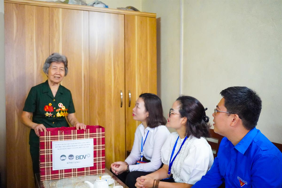 Nhân dịp này, phường Long Biên cũng đã tặng 11 sổ tiết kiệm, trị giá 3 triệu đồng/sổ cho 11 thương binh, bệnh binh, người hoạt động kháng chiến bị nhiễm chất độc hóa học; bố, mẹ, vợ, chồng của liệt sĩ đang được hưởng trợ cấp hàng tháng, đang mắc các bệnh hiểm nghèo và tặng quà tới gia đình chính sách, người có công.