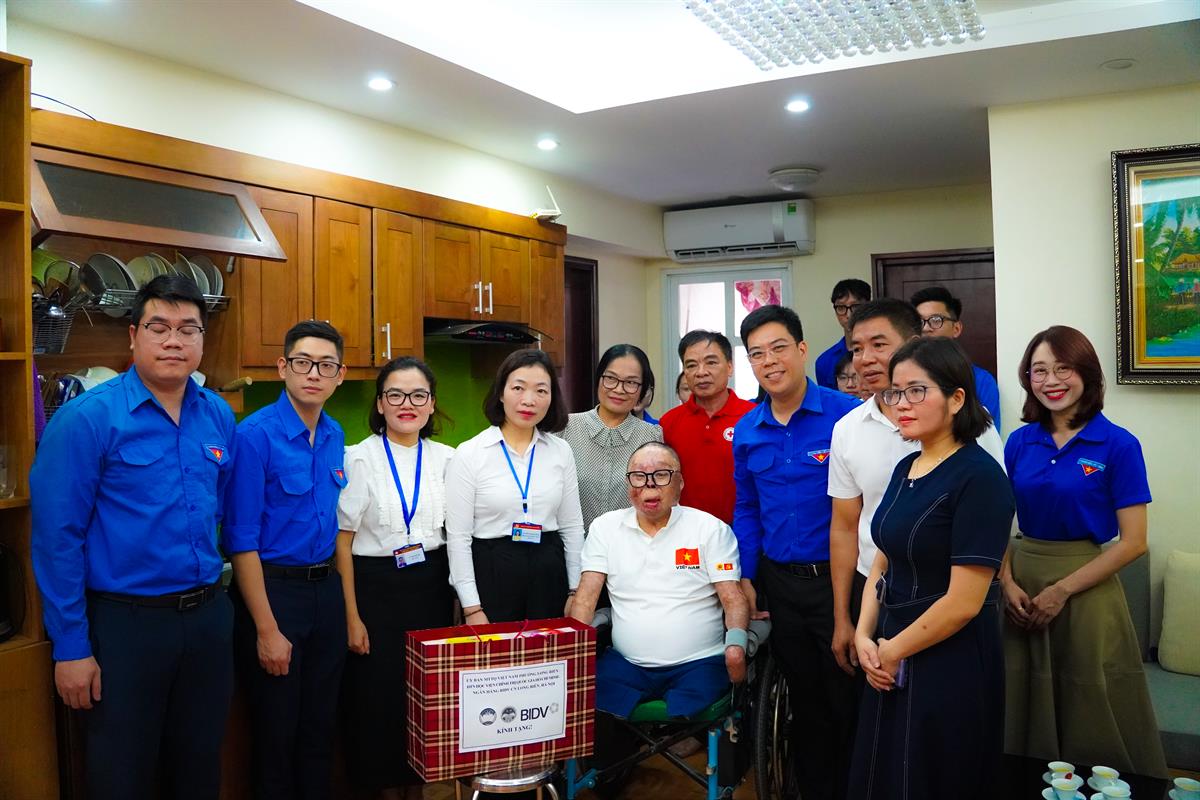 Đồng chí Đào Anh Tuấn, Uỷ viên Ban Chấp hành Trung ương Đoàn, Bí thư Đoàn TNCS Hồ Chí Minh Học viện Chính trị quốc gia Hồ Chí Minh và Ngân hàng Thương mại cổ phần Đầu tư và Phát triển Việt Nam (BIDV) chi nhánh Long Biên tặng quà cho gia đình chính sách có hoàn cảnh khó khăn