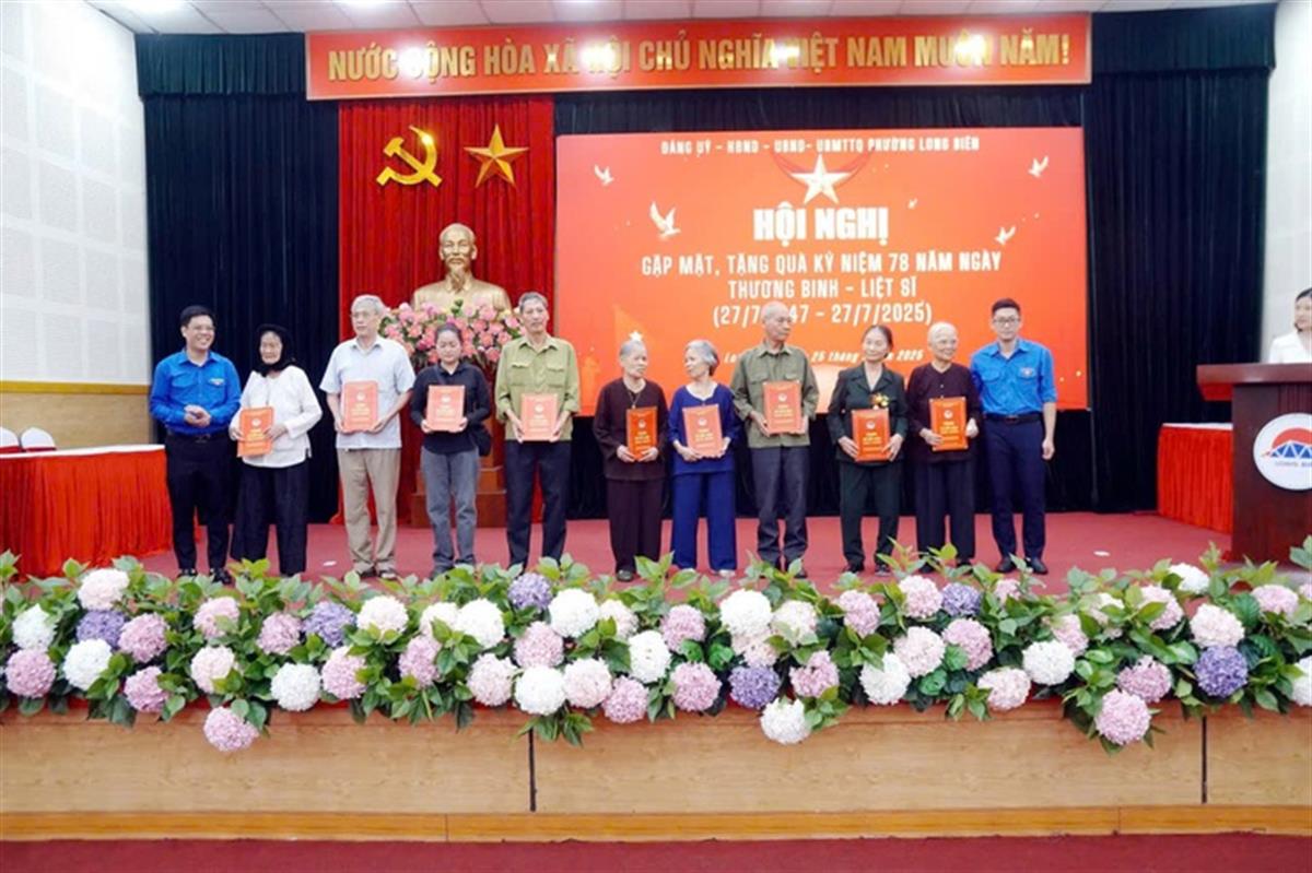 Nhân kỷ niệm 78 năm Ngày Thương binh - Liệt sỹ, phường Long Biên đã tổ chức chi trả quà cho 1.344 lượt người có công và thân nhân người có công với cách mạng, với tổng kinh phí hơn 1,25 tỷ đồng. Trong đó, quà Trung ương được trao cho 673 đối tượng với số tiền 203,4 triệu đồng; quà Thành phố trao cho 671 đối tượng với số tiền 1,054 tỷ đồng.