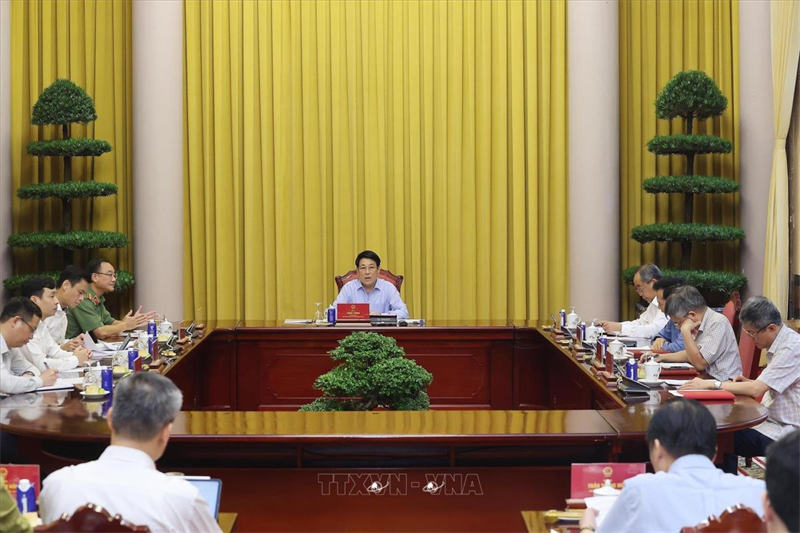 Chủ tịch nước Lương Cường chủ trì buổi làm việc về công tác chuẩn bị cho Lễ mở ký Công ước Hà Nội (15/10/2025).