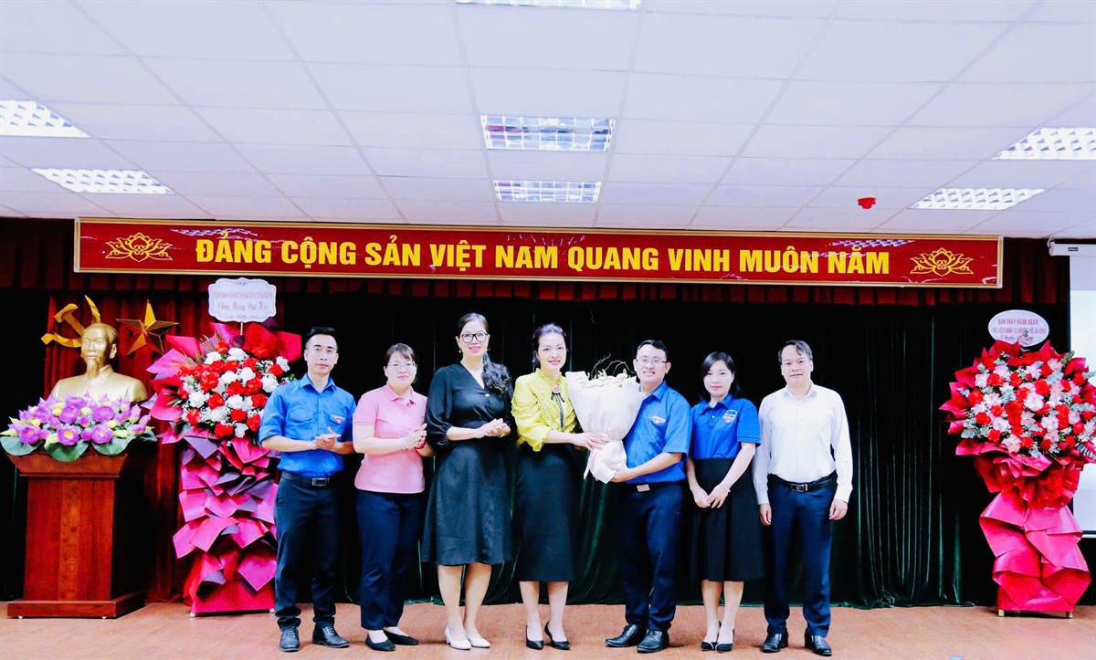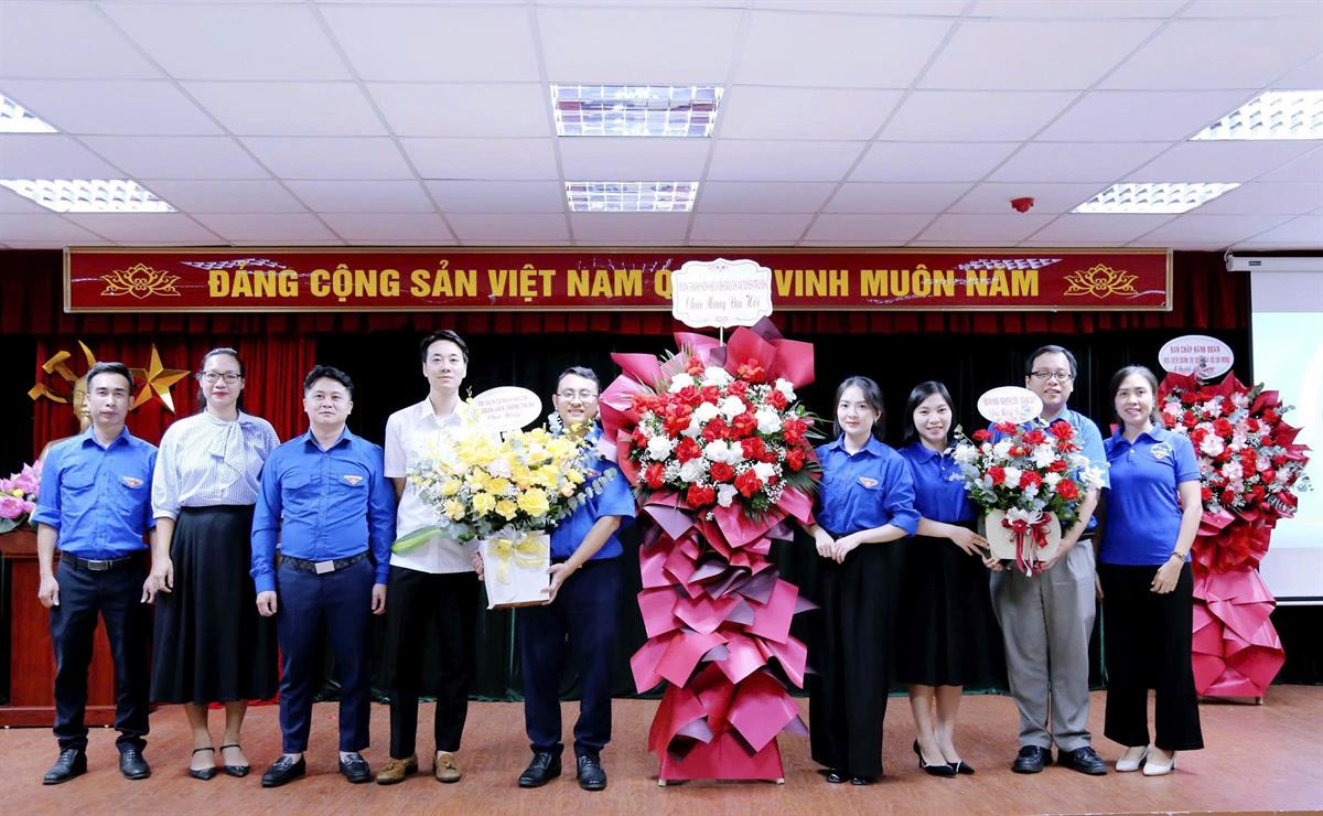 Đại diện Ban Thường vụ, Ban Chấp hành Đoàn Thanh niên Học viện Chính trị quốc gia Hồ Chí Minh tặng hoa chúc mừng Đại hội