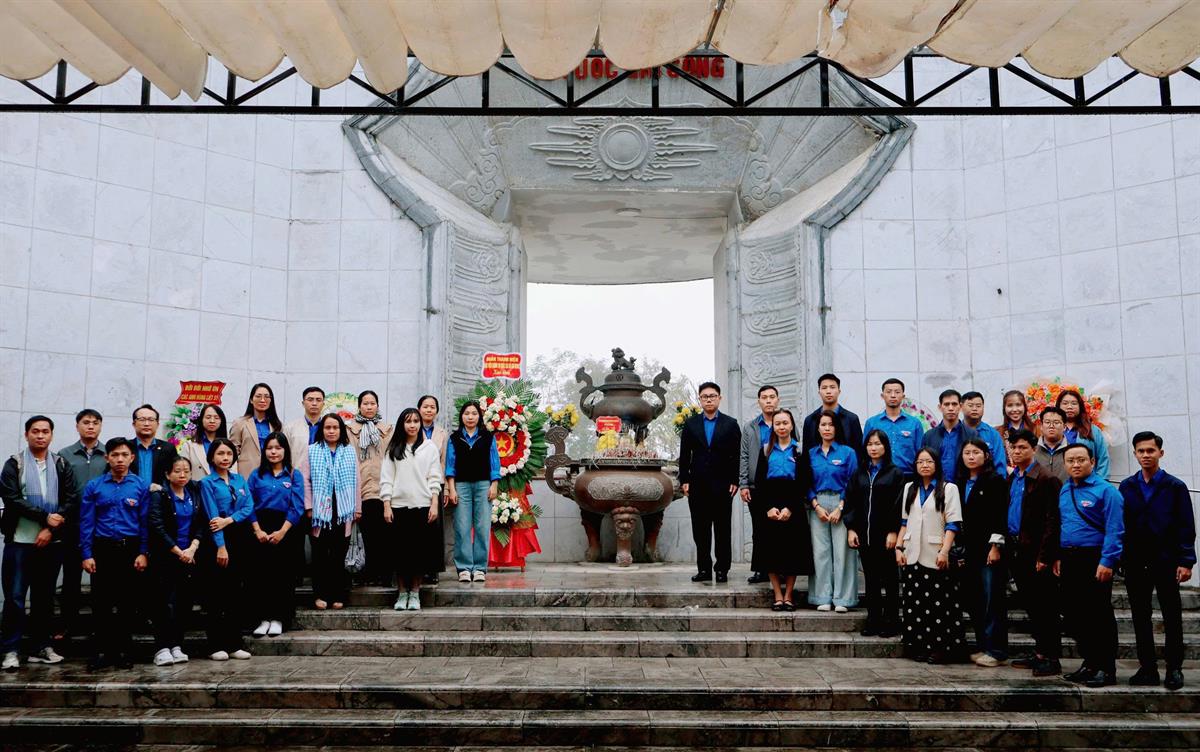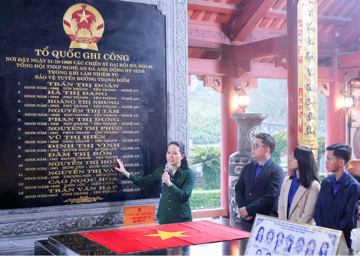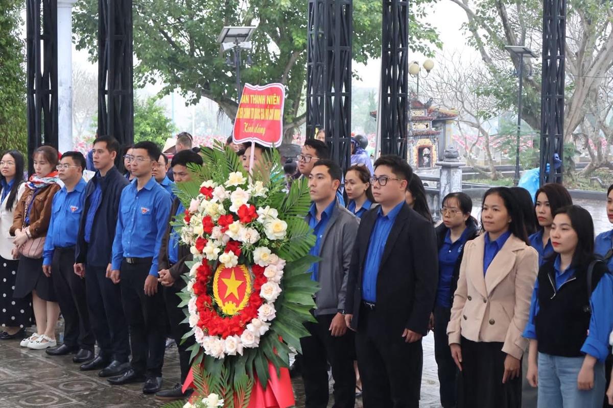 Đoàn dâng hương tại ngôi mộ tập thể 13 chiến sĩ thanh niên xung phong trong khuôn viên Khu di tích lịch sử Truông Bồn