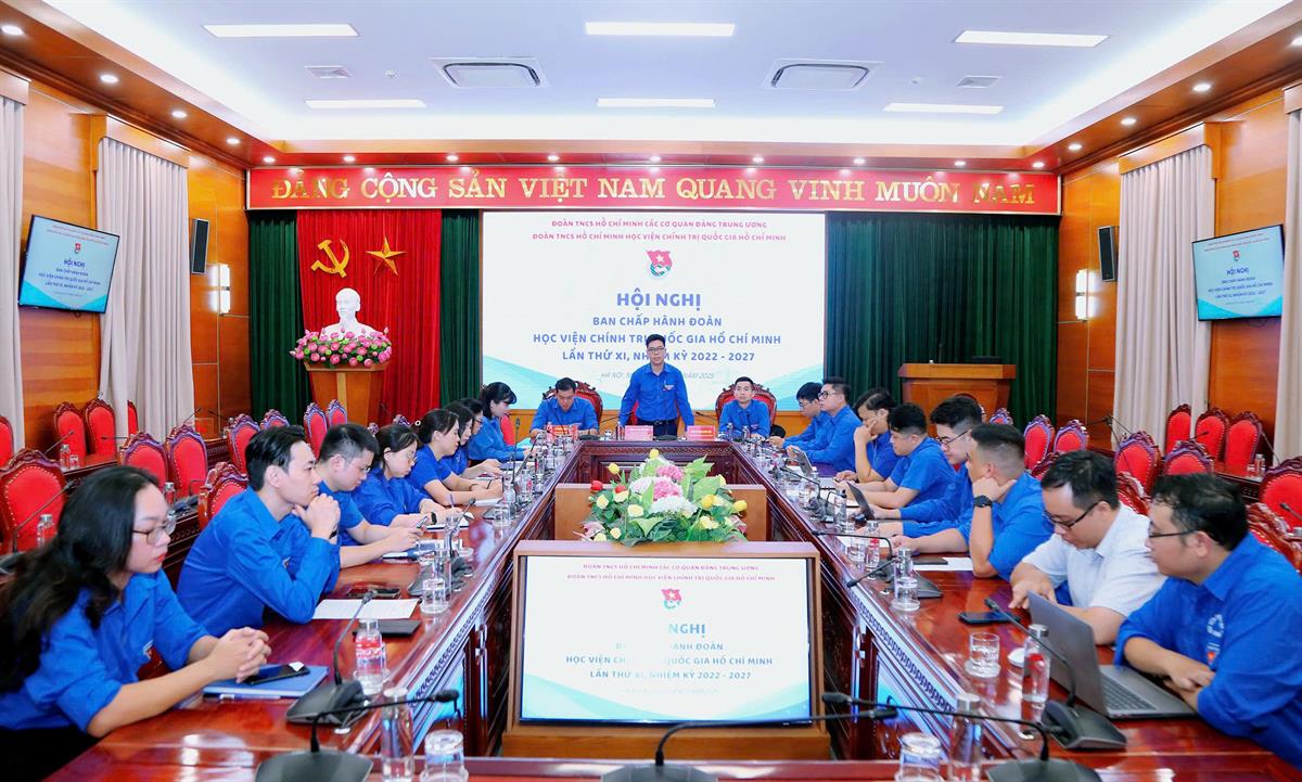 Chủ trì Hội nghị có đồng chí Đào Anh Tuấn, Uỷ viên Ban Chấp hành Trung ương Đoàn, Uỷ viên Ban Thường vụ Đoàn các cơ quan Đảng Trung ương, Bí thư Đoàn Thanh niên Học viện Chính trị quốc gia Hồ Minh; đồng chí Đinh Trung Sơn, Phó Bí Thư Đoàn Học viện Chính trị quốc gia Hồ Chí Minh; đồng chí Phan Hoàng Quỳnh, Phó Bí Thư Đoàn Học viện Chính trị quốc gia Hồ Chí Minh, Bí thư Đoàn Học viện Báo chí và Tuyên truyền.