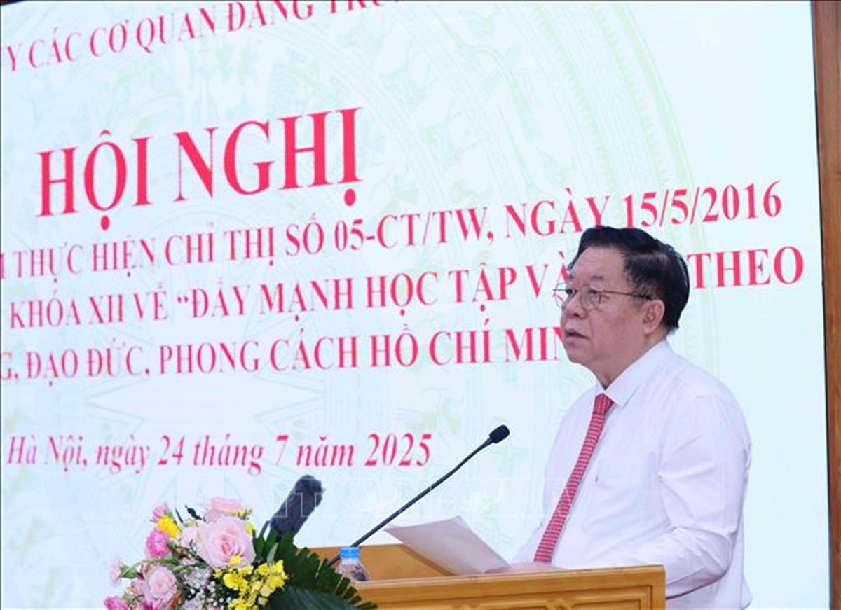 Cụ thể, đồng chí Nguyễn Trọng Nghĩa đề nghị tiếp tục quán triệt, nhận thức sâu sắc, toàn diện hơn về ý nghĩa, tầm quan trọng của việc học tập và làm theo tư tưởng, đạo đức, phong cách Hồ Chí Minh, nhất là vị trí đặc biệt của các cơ quan Đảng Trung ương - được đồng chí Tổng Bí thư Tô Lâm nhiều lần nhấn mạnh và trong dự thảo Văn kiện Đại hội XIV của Đảng cũng xác định: “Là hạt nhân trí tuệ, là bộ tổng tham mưu, đội tiên phong lãnh đạo cơ quan Nhà nước”.