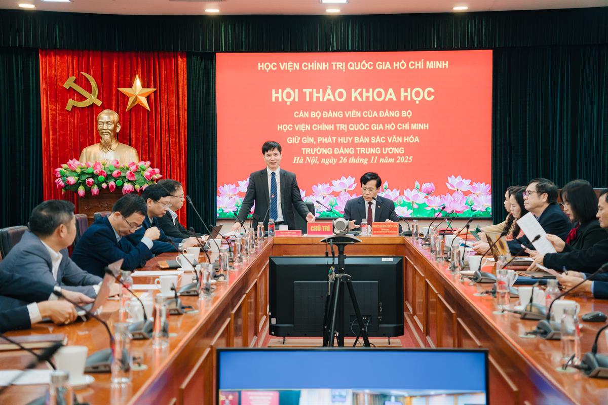 Phát biểu đề dẫn hội thảo, PGS,TS Hoàng Anh, Vụ trưởng Vụ Quản lý khoa học nhấn mạnh: văn hóa Trường Đảng là giá trị kết tinh từ hơn 75 năm hình thành và phát triển. Đây không chỉ là truyền thống quý báu mà còn là nền tảng tinh thần, kim chỉ nam, góp phần hình thành lớp lớp cán bộ trung kiên, có bản lĩnh chính trị vững vàng, phẩm chất đạo đức trong sáng, tư duy khoa học và phong cách làm việc chuyên nghiệp.