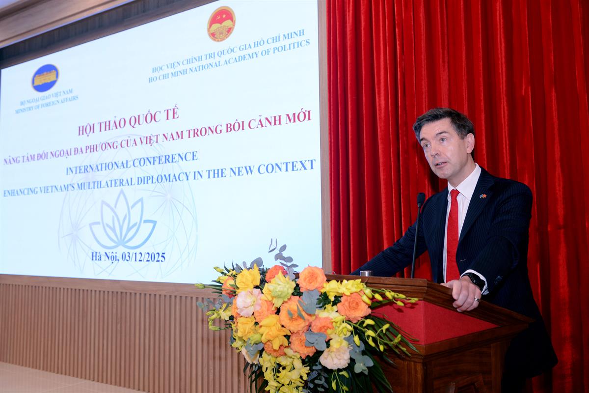 Phát biểu khai mạc, đề dẫn hội thảo, PGS,TS Hoàng Phúc Lâm, Phó Giám đốc Học viện Chính trị quốc gia Hồ Chí Minh nhấn mạnh, thế giới đang chuyển mình với tốc độ chưa từng có trong lịch sử hiện đại. Những biến động về địa chính trị, kinh tế, công nghệ và môi trường không chỉ thay đổi cách các quốc gia tương tác với nhau, mà còn định hình lại các chuẩn mực hợp tác quốc tế. Trong bối cảnh đó, đối ngoại đa phương nổi lên như một trụ cột quan trọng, nơi các quốc gia cùng nhau tìm kiếm tiếng nói chung, chia sẻ trách nhiệm và xây dựng các giải pháp bền vững cho những vấn đề toàn cầu.