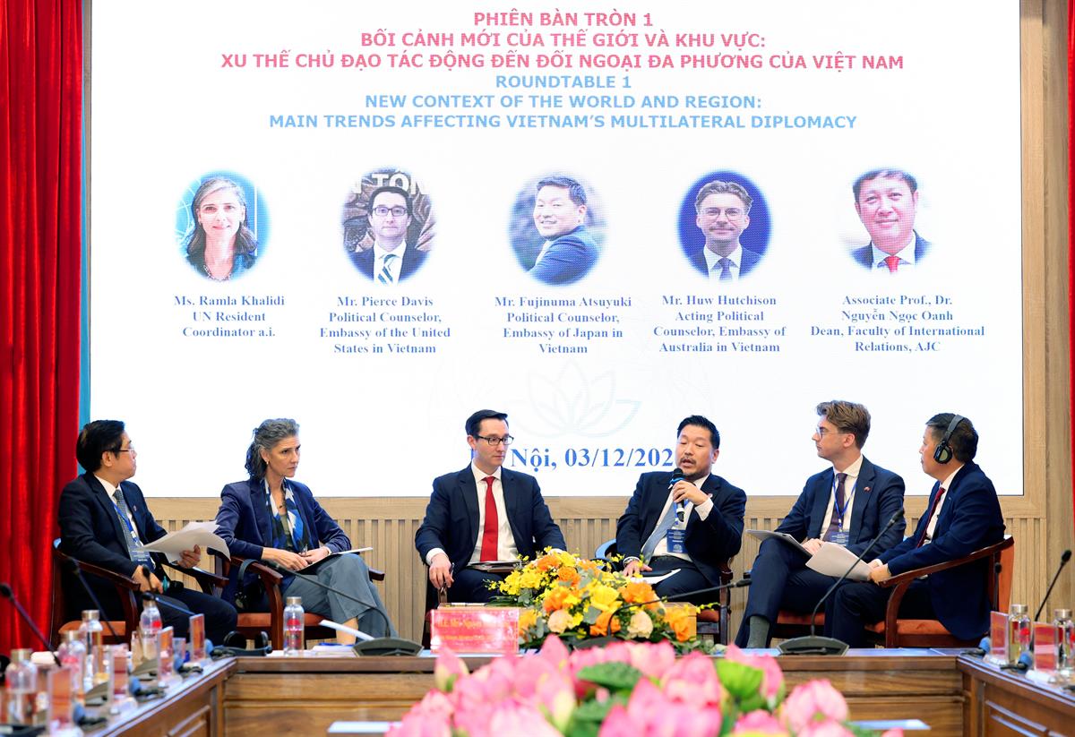 Đồng chủ trì Hội thảo, bà Nguyễn Minh Hằng, Thứ tưởng Bộ Ngoại giao khẳng định: Đối ngoại đa phương là một trụ cột quan trọng để bảo vệ vững chắc độc lập, chủ quyền và thúc đẩy phát triển đất nước. Việt Nam cam kết tăng cường hợp tác với các đối tác, chủ động tham gia định hình các thể chế đa phương, thu hút nguồn ngoại lực để phục vụ đắc lực cho mục tiêu phát triển trong nước, góp phần xây dựng trật tự quốc tế dựa trên luật lệ, bình đẳng và tôn trọng lẫn nhau, vì hòa bình và thịnh vượng chung.