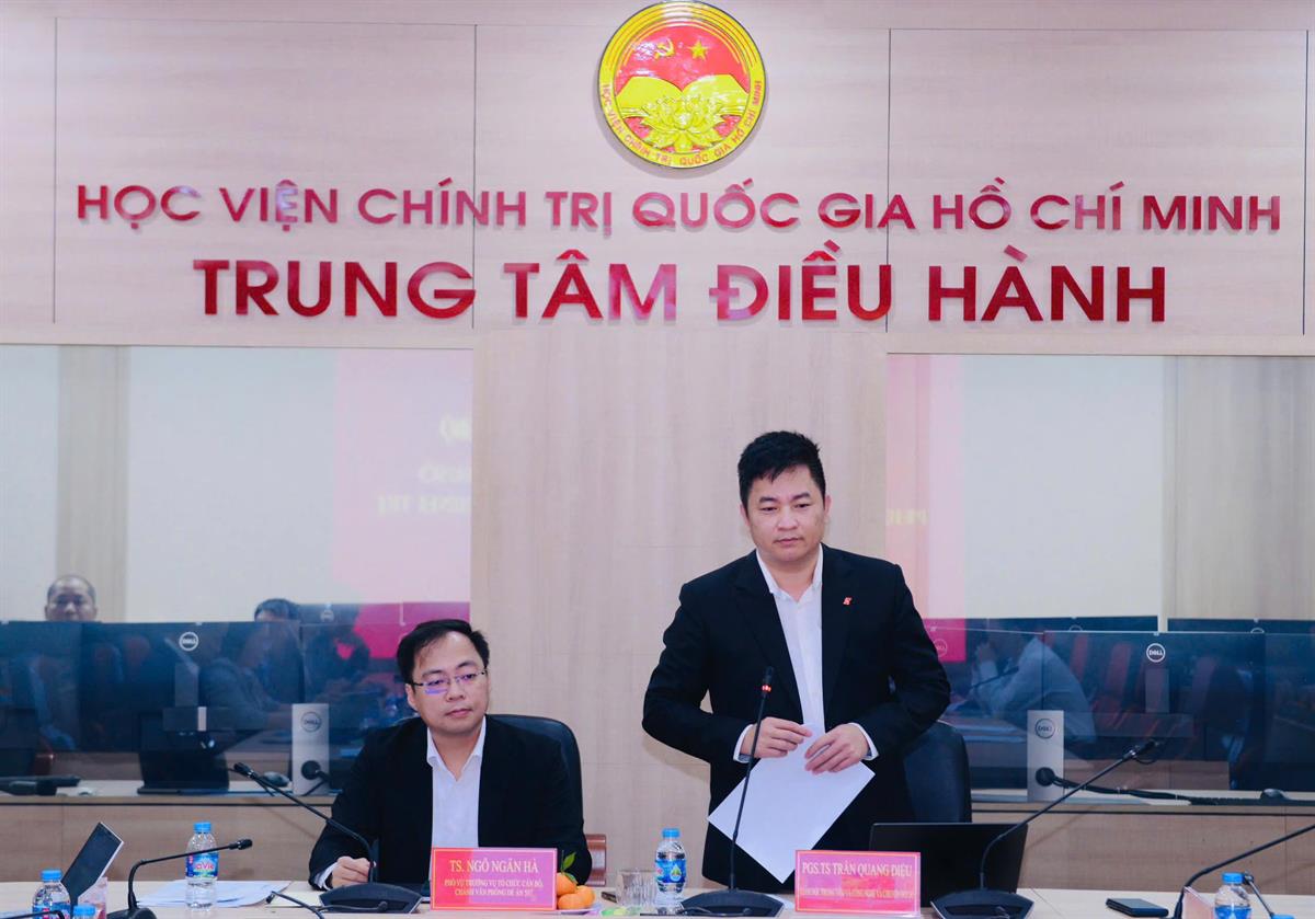 PGS,TS Trần Quang Diệu, Giám đốc Trung tâm Công nghệ và Chuyển đổi số, Học viện Chính trị quốc gia Hồ Chí Minh chủ trì và điều hành toạ đàm