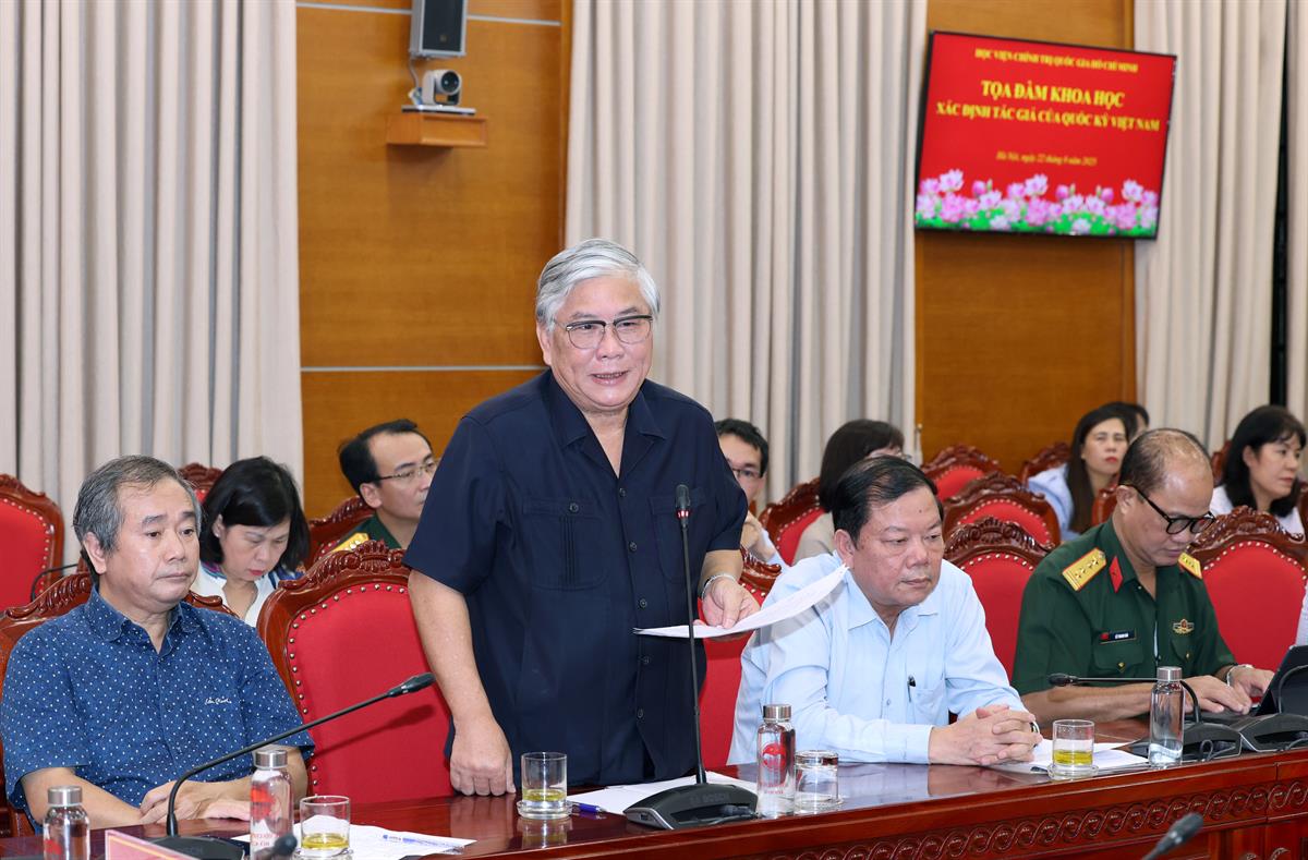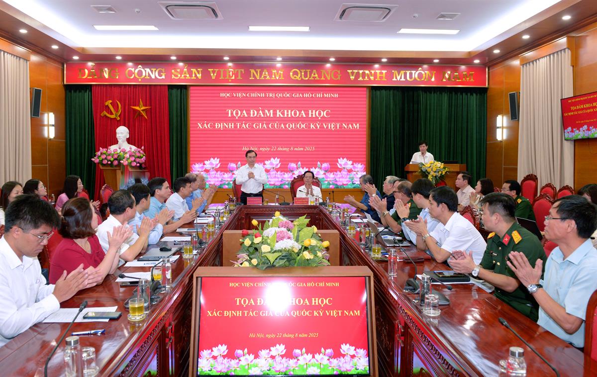 Phát biểu tổng kết tọa đàm, PGS,TS Nguyễn Danh Tiên, Viện trưởng Viện Lịch sử Đảng trân trọng cảm ơn và đánh giá cao các ý kiến trao đổi tâm huyết, khao học của các chuyên gia, nhà khoa học. Với hơn 20 tham luận, từ nhiều góc độ tiếp cận, tọa đàm đã bước đầu cung cấp tư liệu, đưa ra những luận giải về vấn đề còn tồn nghi trong lịch sử. Kết quả của Tọa đàm sẽ là cơ sở khoa học, cung cấp tư liệu quan trọng tham mưu cho Đảng, Nhà nước xác định tác giả Quốc kỳ Việt Nam.