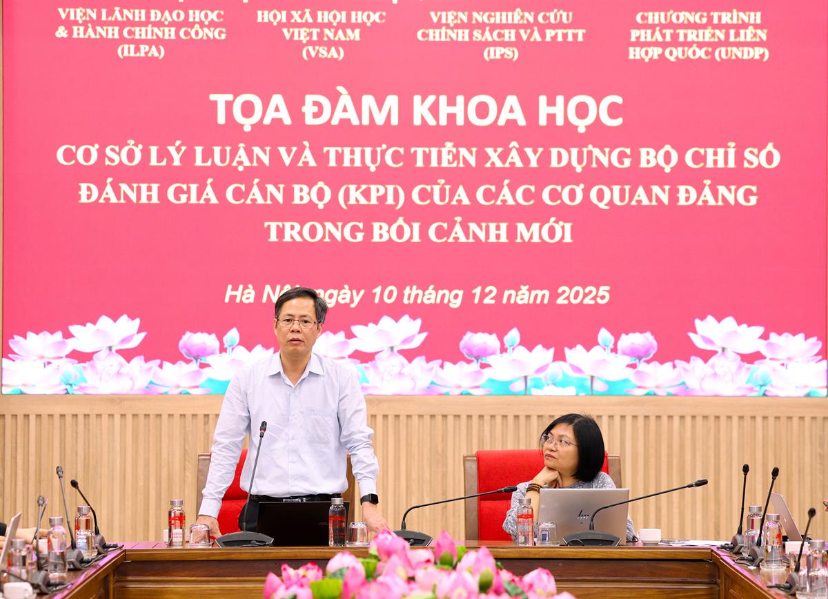 Phát biểu khai mạc và đề dẫn tọa đàm, PGS,TS Lê Văn Chiến, Viện trưởng Viện Lãnh đạo học và Hành chính công nhấn mạnh KPIs đã được áp dụng rộng rãi trên thế giới nhưng trong lĩnh vực công, đặc biệt là trong hệ thống các cơ quan của Đảng, đây vẫn là vấn đề mới mẻ ở Việt Nam. Nếu khu vực tư có thể đánh giá hiệu quả thông qua sản phẩm cụ thể thì khu vực công lại đối mặt với thách thức lớn khi sản phẩm đầu ra khó định lượng, chủ yếu là tham mưu, định hướng và tổ chức thực hiện nhiệm vụ chính trị. Do đó, việc xác định tiêu chí, phương pháp đo lường và đánh giá hiệu quả công việc cần được nghiên cứu kỹ lưỡng, khoa học và phù hợp với thực tiễn.