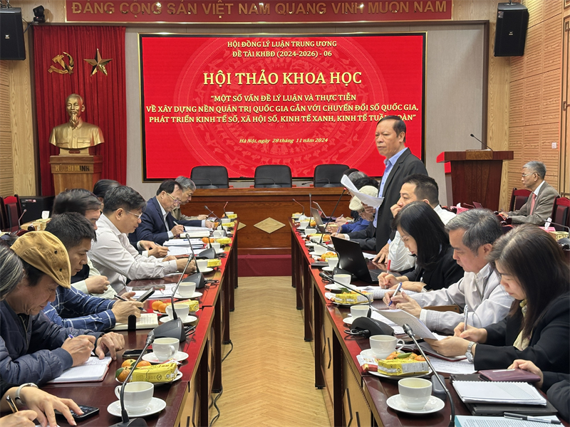 Tại hội thảo, các ý kiến phát biểu đã tập trung làm rõ những vấn đề lý luận từ khái niệm đến những mối quan hệ quan trọng trong quản lý xã hội, quản trị quốc gia gắn với với chuyển đổi số quốc gia, phát triển kinh tế số, xã hội số, kinh tế xanh, kinh tế tuần hoàn; kinh nghiệm quốc tế, mô hình phù hợp cho Việt Nam; khái quát tình hình nghiên cứu, vận dụng trong hoạch định chính sách và tổ chức thực hiện quản trị quốc gia gắn với với chuyển đổi số quốc gia, phát triển kinh tế số, xã hội số, kinh tế xanh, kinh tế tuần hoàn; mục tiêu phát triển đất nước; nêu ra những điểm nghẽn và đề xuất mô hình, khung pháp lý nhằm xây dựng nền quản trị quốc gia gắn với chuyển đổi số quốc gia, phát triển kinh tế số, xã hội số, kinh tế xanh, kinh tế tuần hoàn; đề xuất kiến nghị đưa nội dung mô hình xây dựng quản trị quốc gia, gắn với chuyển đổi số, kinh tế số, xã hội số, kinh tế xanh, kinh tế tuần hoàn vào Văn kiện Đại hội Đảng toàn quốc lần thứ XIV…