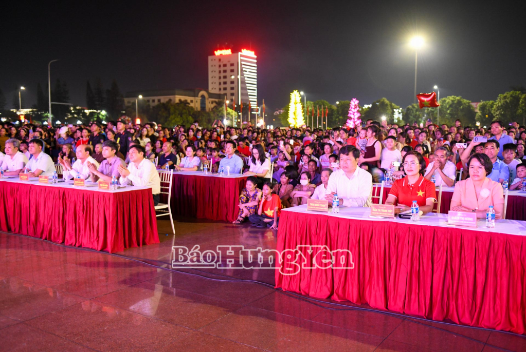 Trong chương trình nghệ thuật, các đại biểu và Nhân dân được thưởng thức nhiều tiết mục ca múa nhạc đặc sắc ca ngợi chiến công và những dấu mốc lịch sử hào hùng của dân tộc; ca ngợi Đảng, Bác Hồ, tình yêu quê hương, đất nước và khát vọng vươn lên của Đảng bộ, chính quyền và Nhân dân Hưng Yên trong thời kỳ đổi mới, hội nhập và phát triển.