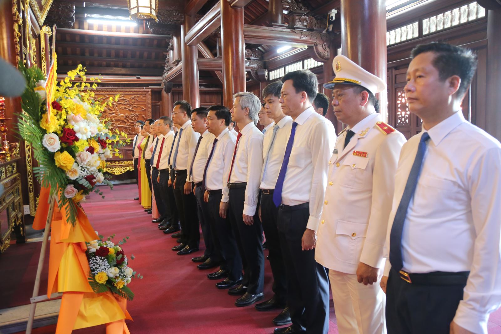 Dự lễ dâng hương, dâng hoa có các đồng chí: Nguyễn Hữu Nghĩa, Ủy viên Ban Chấp hành Trung ương Đảng, Bí thư Tỉnh ủy; Trần Quốc Toản, Phó Bí thư Thường trực Tỉnh ủy; Trần Quốc Văn, Phó Bí thư Tỉnh ủy, Chủ tịch HĐND tỉnh; Nguyễn Khắc Thận, Phó Bí thư Tỉnh ủy, Chủ tịch UBND tỉnh; Nguyễn Mạnh Hùng, Phó Bí thư Tỉnh ủy, Chủ tịch Ủy ban MTTQ Việt Nam tỉnh; các đồng chí Ủy viên Ban Thường vụ Tỉnh ủy, Thường trực HĐND tỉnh, lãnh đạo UBND tỉnh, Ban Thường trực Ủy ban MTTQ Việt Nam tỉnh; lãnh đạo các ban, sở, ngành, đoàn thể của tỉnh.