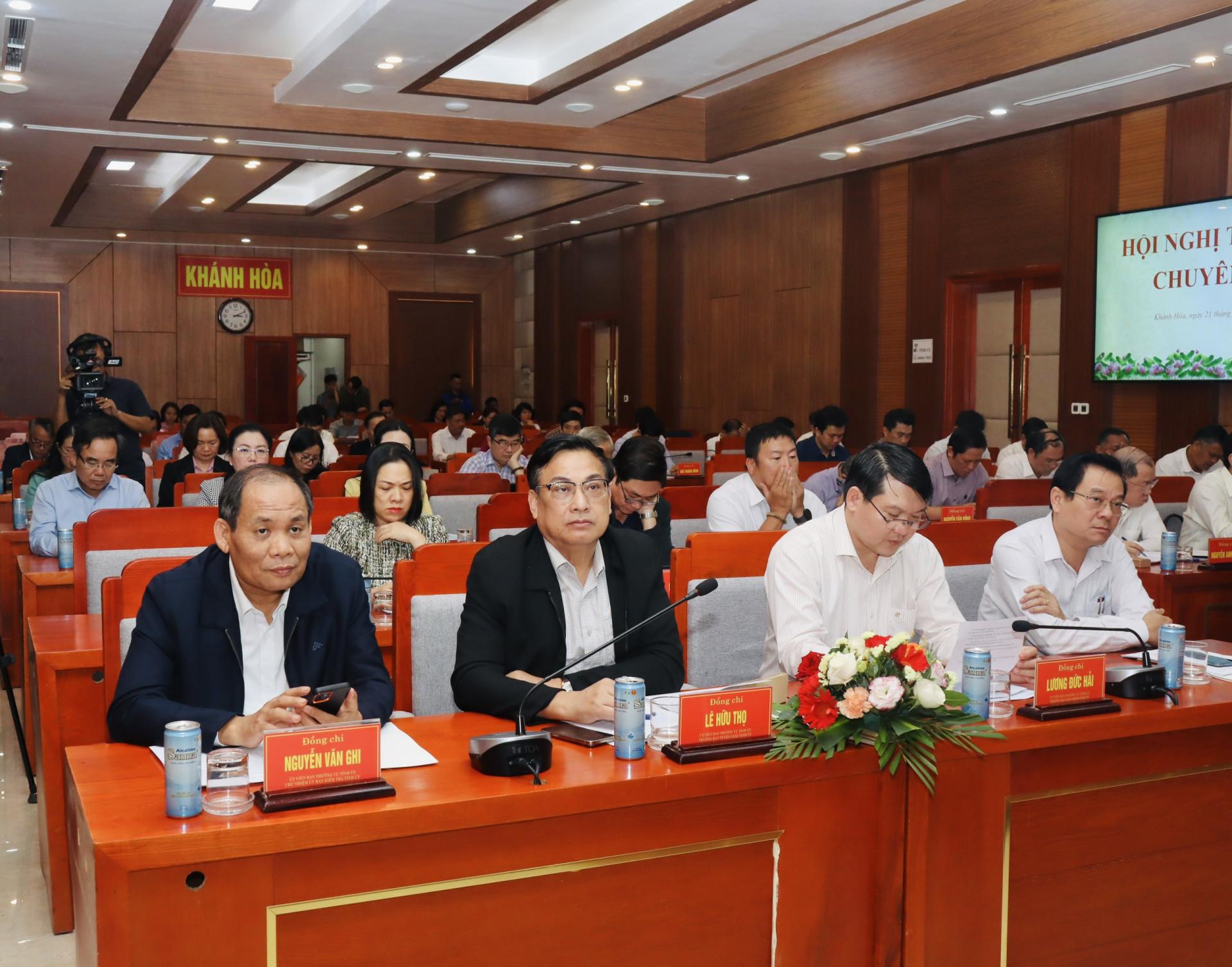 Chiều 21-1, Tỉnh ủy Khánh Hòa tổ chức Hội nghị chuyên đề về sắp xếp bộ máy của các tổ chức đảng và điều chỉnh, phương án sắp xếp tổ chức bộ máy của hệ thống chính trị tỉnh. Các ông: Nghiêm Xuân Thành - Ủy viên Trung ương Đảng, Bí thư Tỉnh ủy; Nguyễn Khắc Toàn - Phó Bí thư Thường trực Tỉnh ủy, Chủ tịch HĐND tỉnh; Nguyễn Tấn Tuân - Phó Bí thư Tỉnh ủy, Chủ tịch UBND tỉnh chủ trì hội nghị.