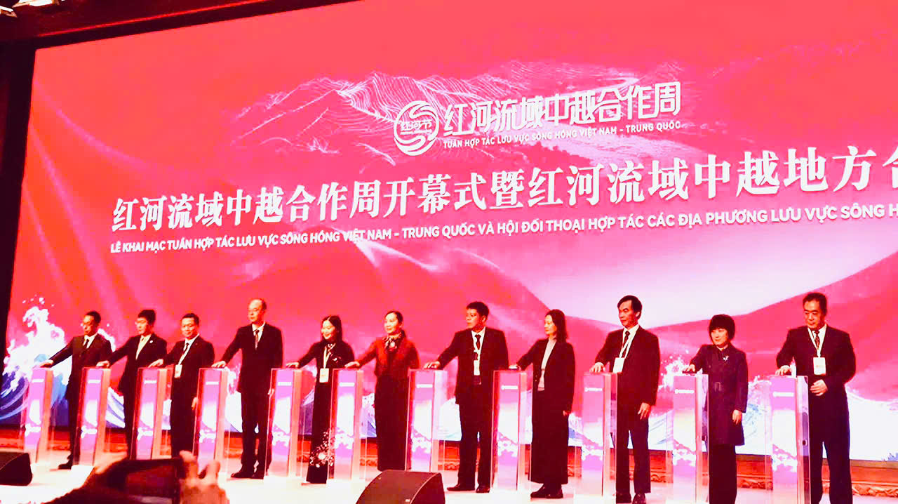Sau các phát biểu của các tỉnh, đại biểu đã thực hiện nghi thức nhấn nút khai mạc “Lễ hội Hồng Hà - Tuần lễ Hợp tác Trung - Việt lưu vực sông Hồng năm 2025 và Đối thoại hợp tác các địa phương lưu vực sông Hồng Việt - Trung”.