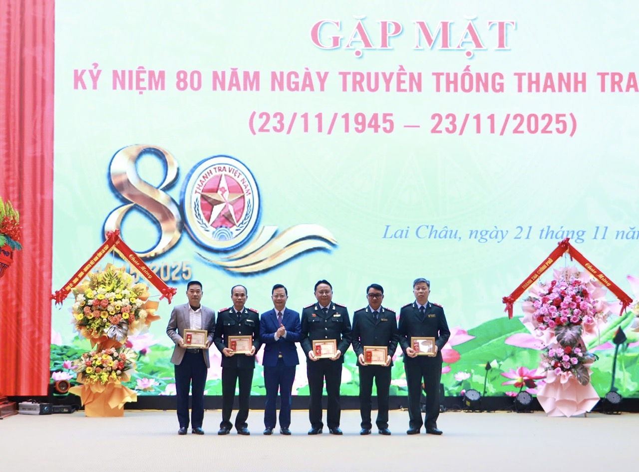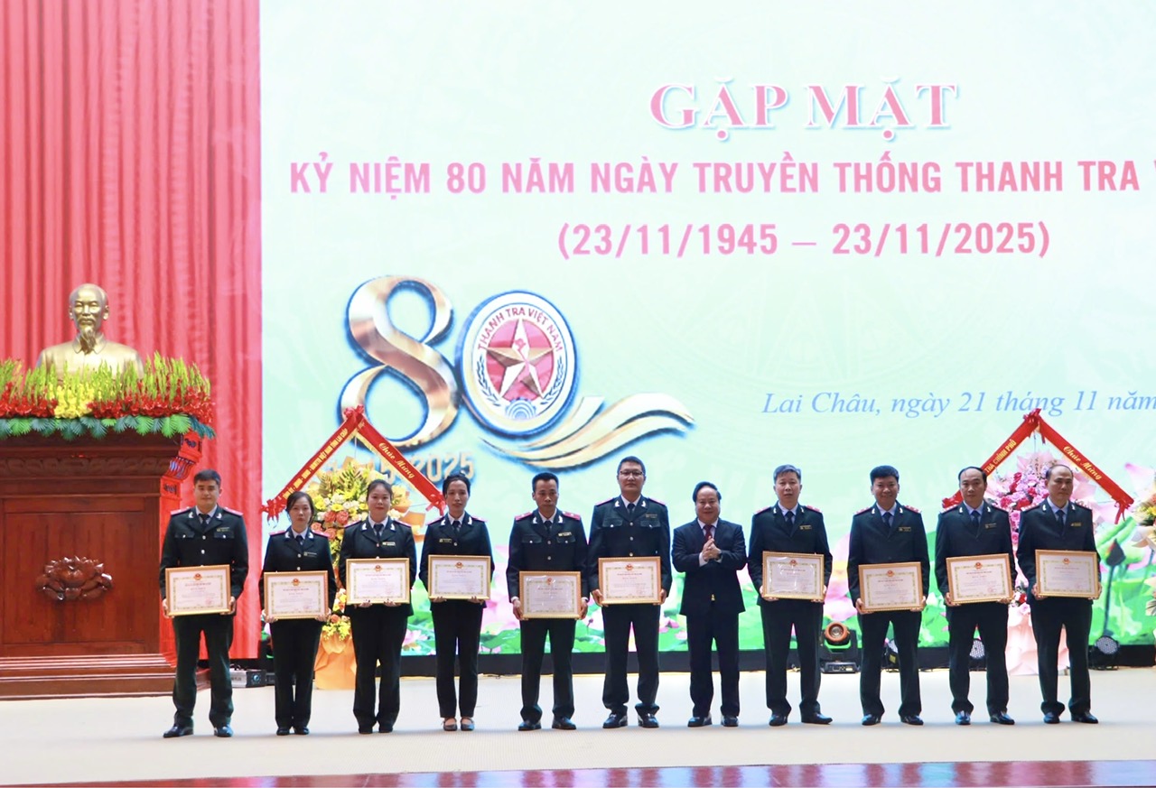 Nhân dịp này, Thủ tướng Chính phủ tặng Bằng khen cho 1 cá nhân đã có thành tích xuất sắc trong công tác, góp phần vào sự nghiệp xây dựng chủ nghĩa xã hội và bảo vệ Tổ quốc; Thanh tra Chính phủ tặng Kỷ niệm chương cho 6 cá nhân vì đã có đóng góp tích cực vào sự nghiệp xây dựng và phát triển Thanh tra Việt Nam. Chủ tịch UBND tỉnh Lai Châu tặng Bằng khen cho 10 cá nhân; Thanh tra tỉnh tặng Giấy khen cho 6 cá nhân vì đã có thành tích xuất sắc trong Phong trào thi đua chào mừng kỷ niệm 80 năm Ngày truyền thống ngành Thanh tra Việt Nam (23/11/1945 - 23/11/2025).