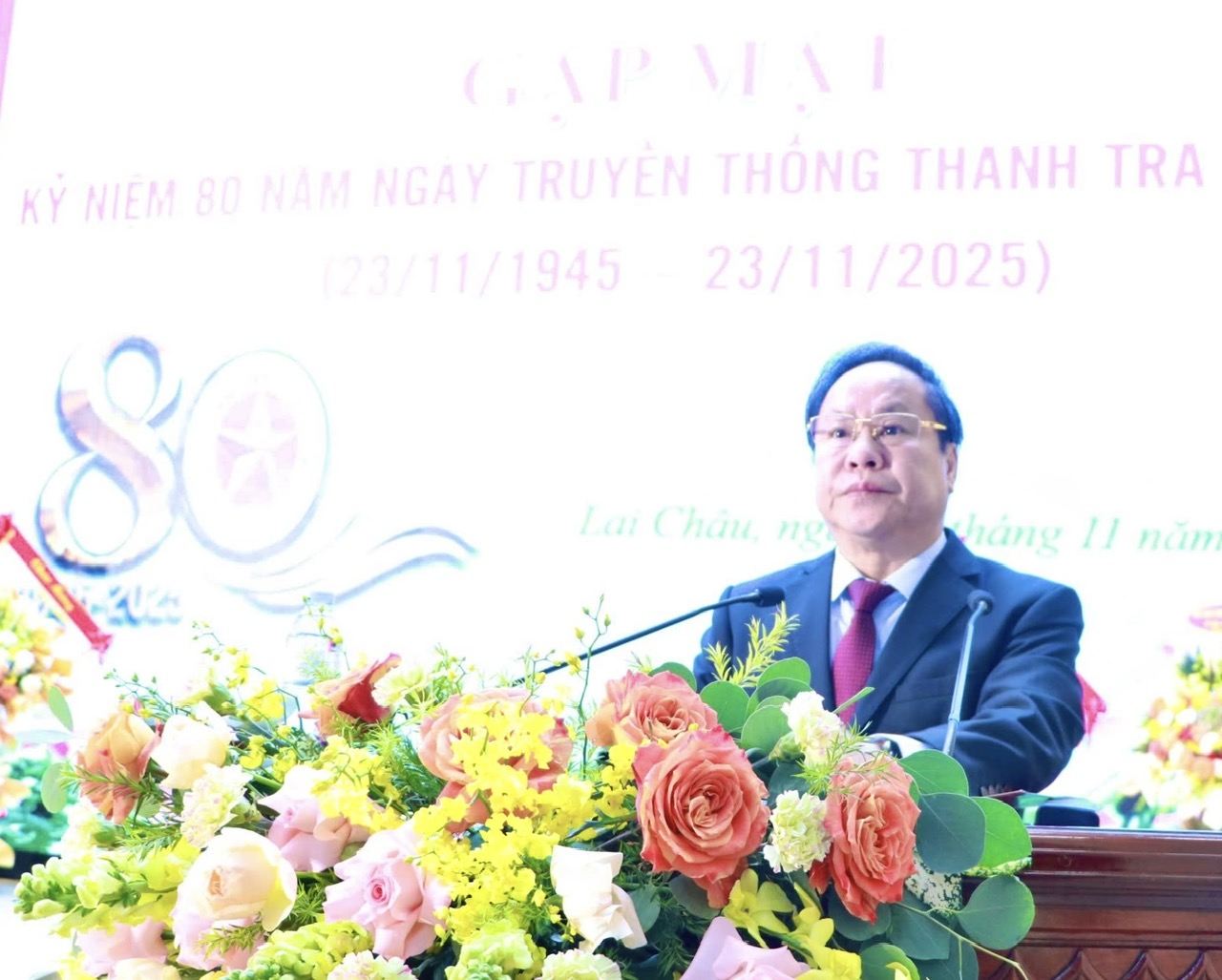 Tại buổi Gặp mặt, đại diện lãnh đạo Thanh tra tỉnh đã ôn lại truyền thống 80 năm Ngày truyền thống Thanh tra (23/11/1945 - 23/11/2025) và 55 năm ngày thành lập Thanh tra tỉnh Lai Châu (03/6/1970 - 03/6/2025). Theo đó, cách đây 80 năm, ngày 23/11/1945, Chủ tịch Hồ Chí Minh ký Sắc lệnh số 64 thành lập Ban Thanh tra Đặc biệt, tổ chức tiền thân của ngành Thanh tra Việt Nam ngày nay.