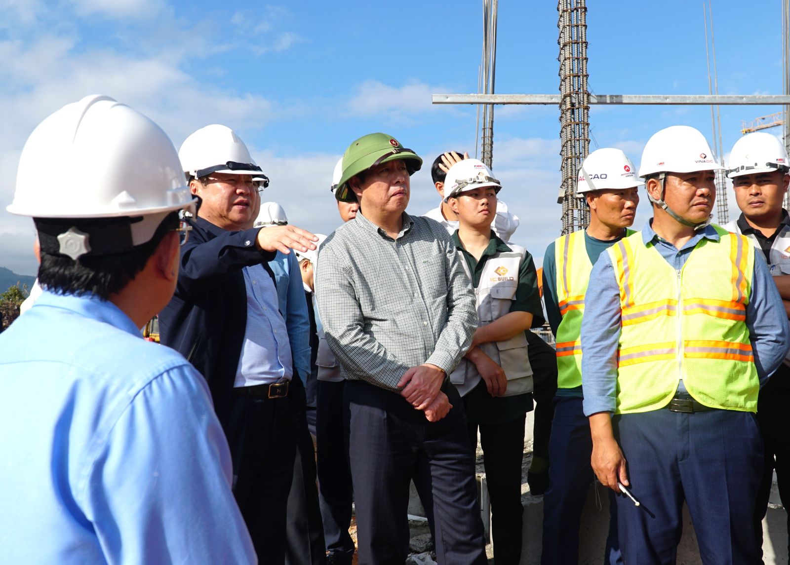 Dịp này, đồng chí Chủ tịch UBND tỉnh cùng Đoàn công tác đã tặng quà động viên công nhân đang thi công trên công trường.