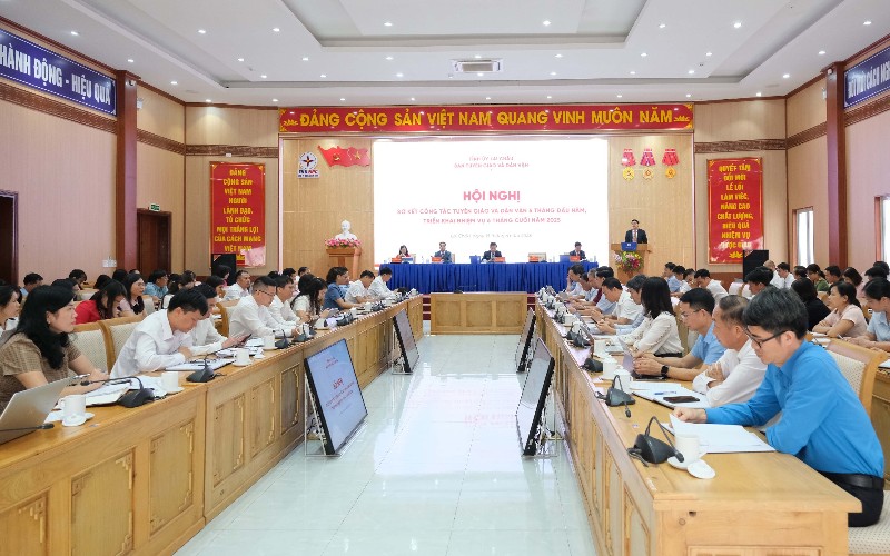 Quang cảnh Hội nghị sơ kết công tác tuyên giáo và dân vận 6 tháng đầu năm, triển khai nhiệm vụ 6 tháng cuối năm 2025 của Ban Tuyên giáo và Dân vận Tỉnh ủy.