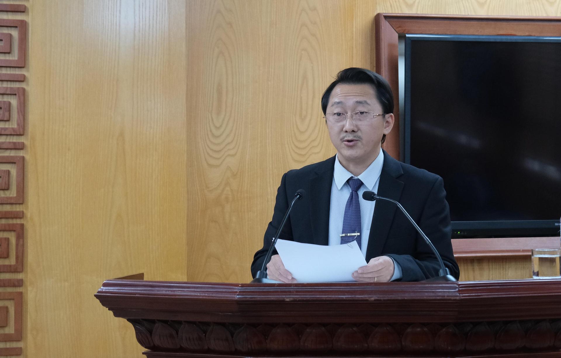 Đồng chí Sùng A Hồ - Phó Bí thư Thường trực Tỉnh ủy, Chủ tịch Ủy ban Mặt trận Tổ quốc Việt Nam tỉnh phát biểu giao nhiệm vụ cho các đồng chí được điều động.