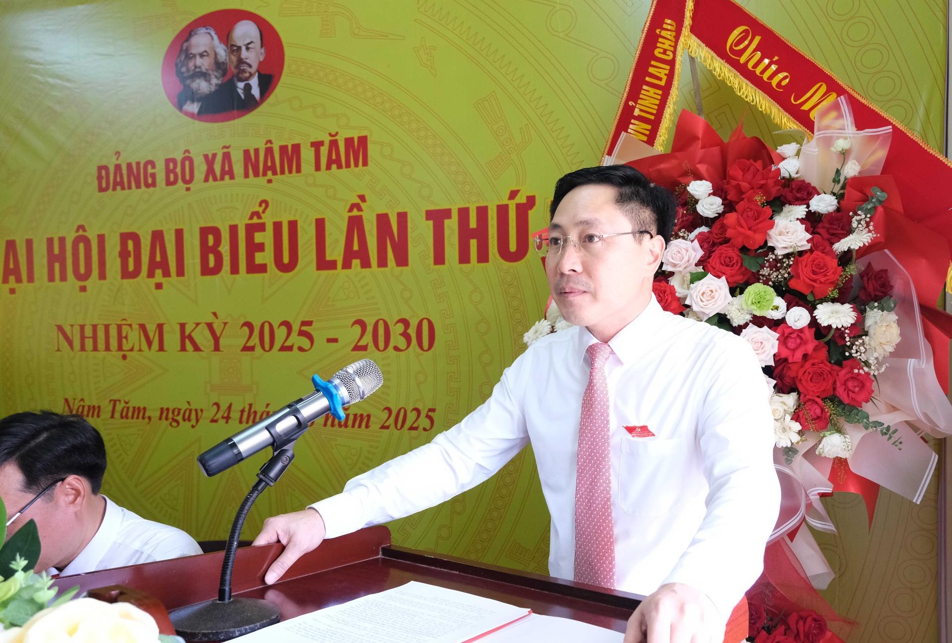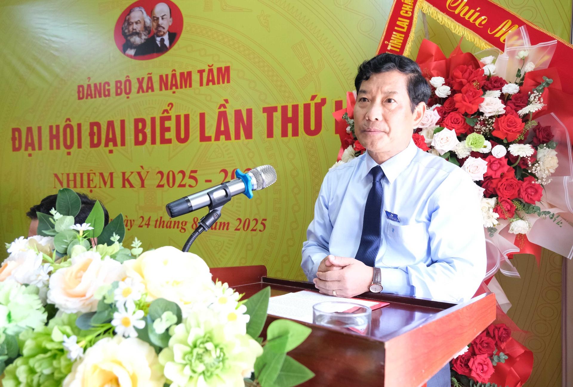 Phát biểu chỉ đạo tại Đại hội, đồng chí Chu Lê Chinh - Ủy viên Ban Thường vụ Tỉnh ủy, Phó Chủ tịch HĐND tỉnh chúc mừng những kết quả Đảng bộ, chính quyền và nhân dân xã Nậm Tăm đạt được trong nhiệm kỳ qua. Đồng chí Phó Chủ tịch HĐND tỉnh đề nghị, Đảng bộ, chính quyền xã khẩn trương lãnh đạo, chỉ đạo công tác quy hoạch chung xã theo hướng kế thừa quy hoạch vùng sản xuất nông sản tập trung trước sáp nhập. Định hướng rõ về phát triển ngành, lĩnh vực, phát triển hệ thống giao thông kết nối, tạo động lực phát triển, liên kết vùng. Đồng thời, đẩy mạnh tái cơ cấu ngành Nông nghiệp gắn với ứng dụng công nghệ cao, phát triển nông nghiệp thông minh, sản xuất hàng hóa tập trung; hình thành các sản phẩm OCOP đặc trưng của xã, xây dựng thương hiệu nông sản. Phát triển mạnh dịch vụ - du lịch cộng đồng gắn với bảo tồn bản sắc văn hóa dân tộc…