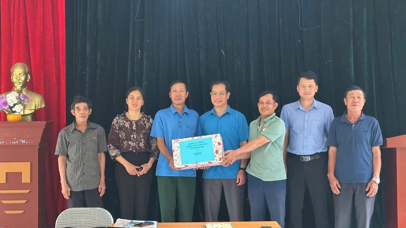Đồng chí Phạm Thanh Quang – Bí thư Đảng ủy, Chủ tịch HĐND xã tặng quà cho bản Nậm Khao.