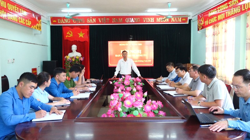 Đồng chí Nguyễn Cao Cường - Bí thư Đảng ủy xã Hồng Thu phát biểu chỉ đạo tại cuộc họp Ban Thường vụ Đảng ủy xã.