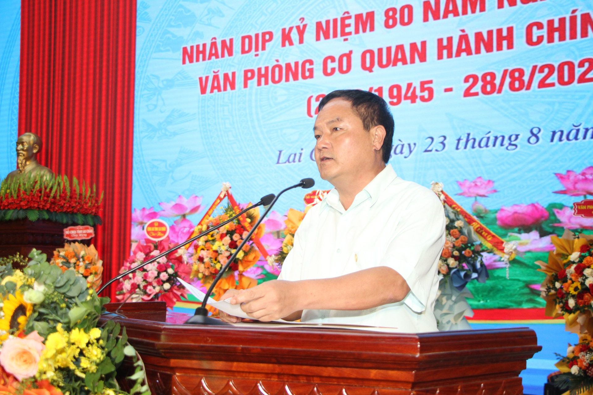Tại buổi gặp mặt các đại biểu đã ôn lại truyền thống 80 năm Ngày Truyền thống Văn phòng cơ quan hành chính Nhà nước. Trải qua 8 thập kỷ, trong bất kỳ hoàn cảnh nào, đội ngũ cán bộ văn phòng luôn thể hiện tinh thần tận tụy, trách nhiệm, trung thành, sáng tạo, góp phần quan trọng vào sự lãnh đạo, chỉ đạo, điều hành của chính quyền các cấp. Văn phòng không chỉ là nơi tham mưu, tổng hợp, cầu nối thông tin, mà còn là nơi tổ chức điều phối và bảo đảm điều kiện phục vụ, giữ vai trò “thầm lặng mà quan trọng” đối với hiệu lực, hiệu quả quản lý Nhà nước.