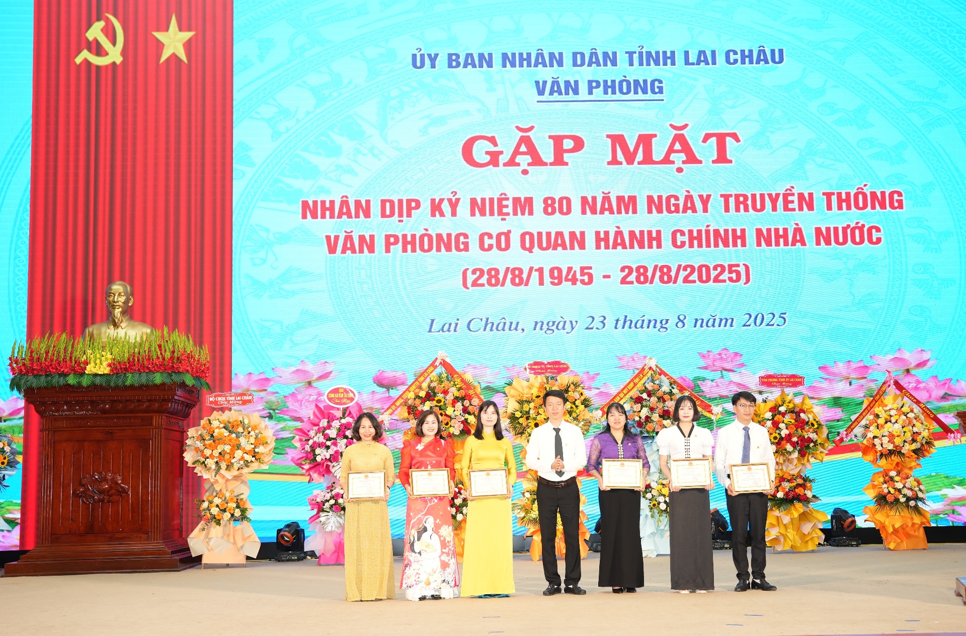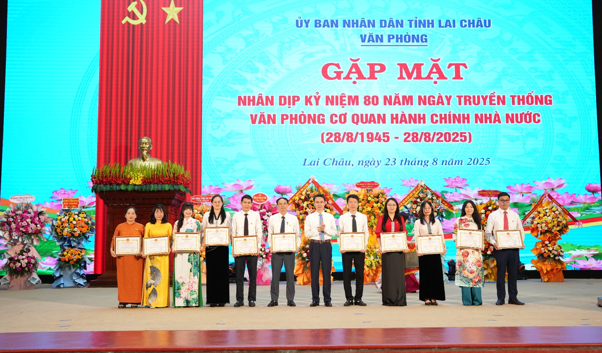 Dịp này, 3 tập thể, 11 cá nhân được Chủ tịch UBND tỉnh tặng Bằng khen; 3 tập thể, 7 cá nhân được Chánh Văn phòng UBND tỉnh tặng Giấy khen đã có thành tích xuất sắc trong phong trào thi đua chào mừng Kỷ niệm 80 năm Ngày truyền thống Văn phòng cơ quan hành chính Nhà nước (28/8/1945 - 28/8/2025).