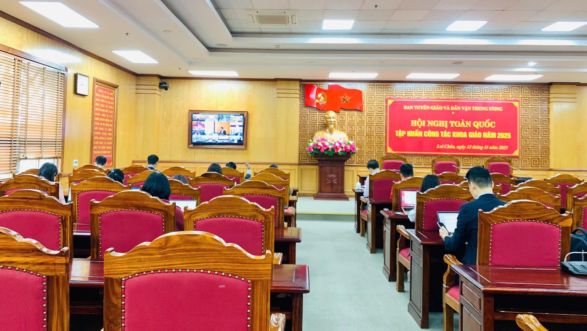 Dự hội nghị tại điểm cầu tỉnh Lai Châu có đồng chí Lê Đức Dục - Ủy viên Ban Thường vụ Tỉnh ủy, Trưởng Ban Tuyên giáo và Dân vận Tỉnh ủy; đại diện lãnh đạo các sở, ngành: Giáo dục và Đào tạo; Y tế; Khoa học và Công nghệ; Nông nghiệp và Môi trường; Văn hóa, Thể thao và Du lịch; Trường Cao đẳng Lai Châu; đại diện các phòng chuyên môn thuộc Ban Tuyên giáo và Dân vận Tỉnh ủy; đại diện Thường trực Đảng ủy, lãnh đạo UBND các xã, phường...
