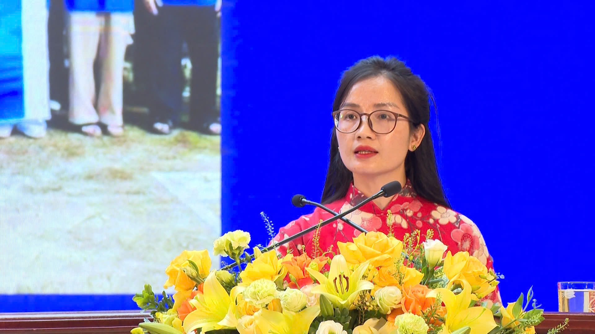Đồng chí Vừ Thị Mai Dinh - Phó Chủ tịch Ủy ban MTTQ Việt Nam tỉnh, Bí thư Tỉnh đoàn tham luận tại phiên làm việc thứ nhất.