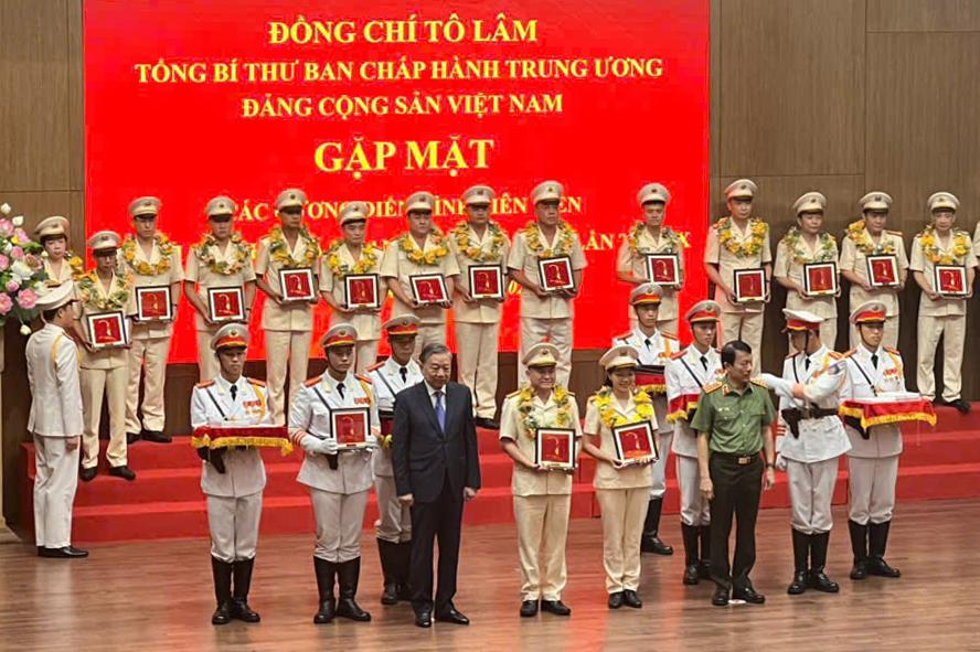 Thiếu tá Hoàng A Liền – Phó trưởng Phòng Cảnh sát Hình sự, Công an tỉnh Lai Châu (đại diện tiêu biểu cho lực lượng Công an toàn quốc giai đoạn 2020 - 2025) vinh dự được gặp mặt và báo công với Tổng Bí thư Tô Lâm.