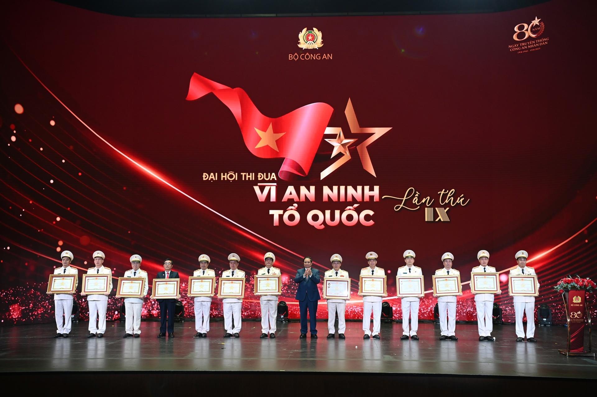 Thủ tướng Chính phủ Phạm Minh Chính trao danh hiệu Anh hùng lực lượng vũ trang nhân dân do Chủ tịch nước phong tặng cho các đơn vị, trong đó có Phòng Cảnh sát Hình sự, Công an tỉnh Lai Châu (ngoài cùng bên phải).