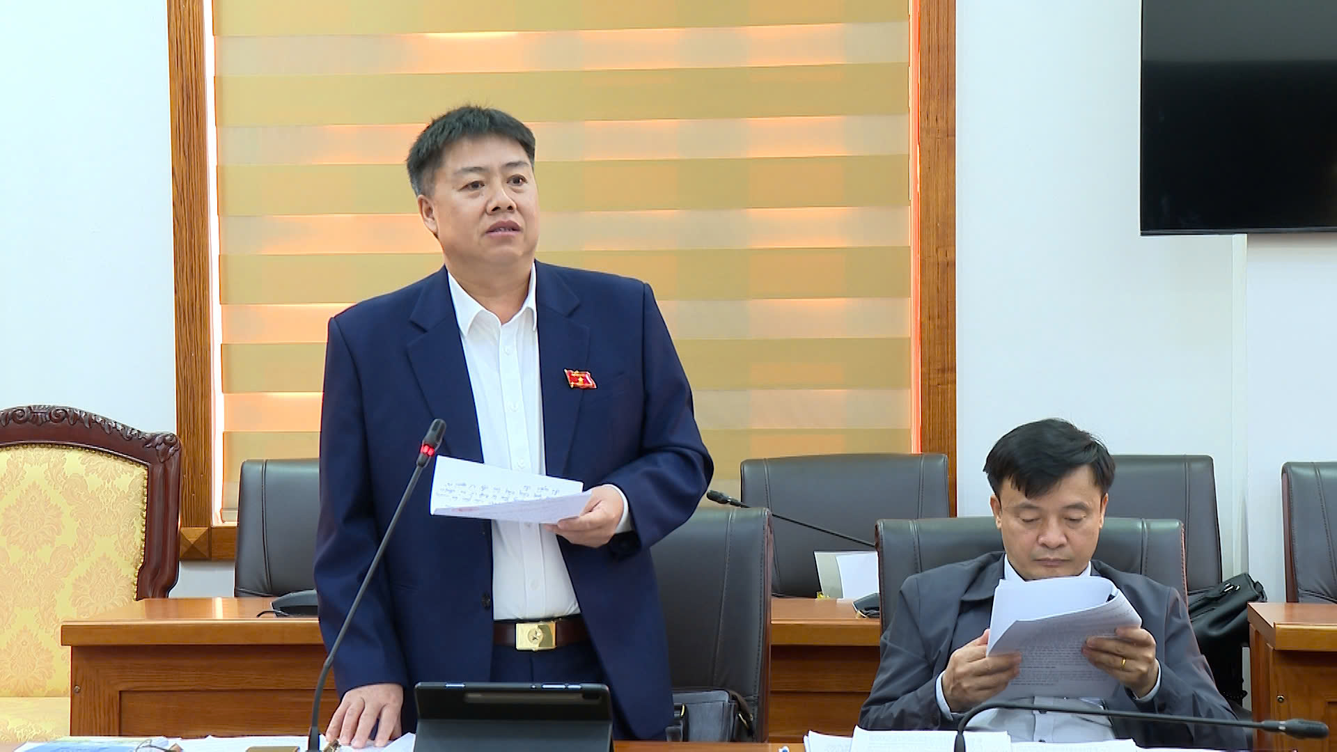 Đại biểu Lù Văn Quân – Bí thư Đảng ủy xã Pa Tần tham gia ý kiến vào một số dự thảo nghị quyết.