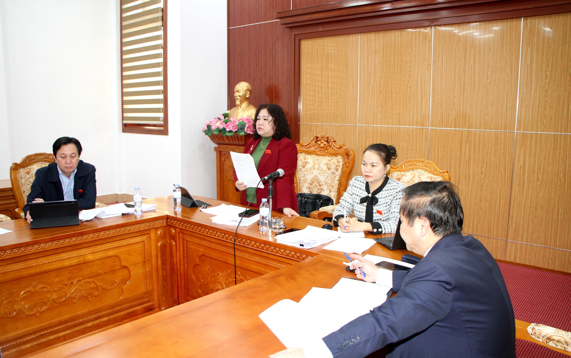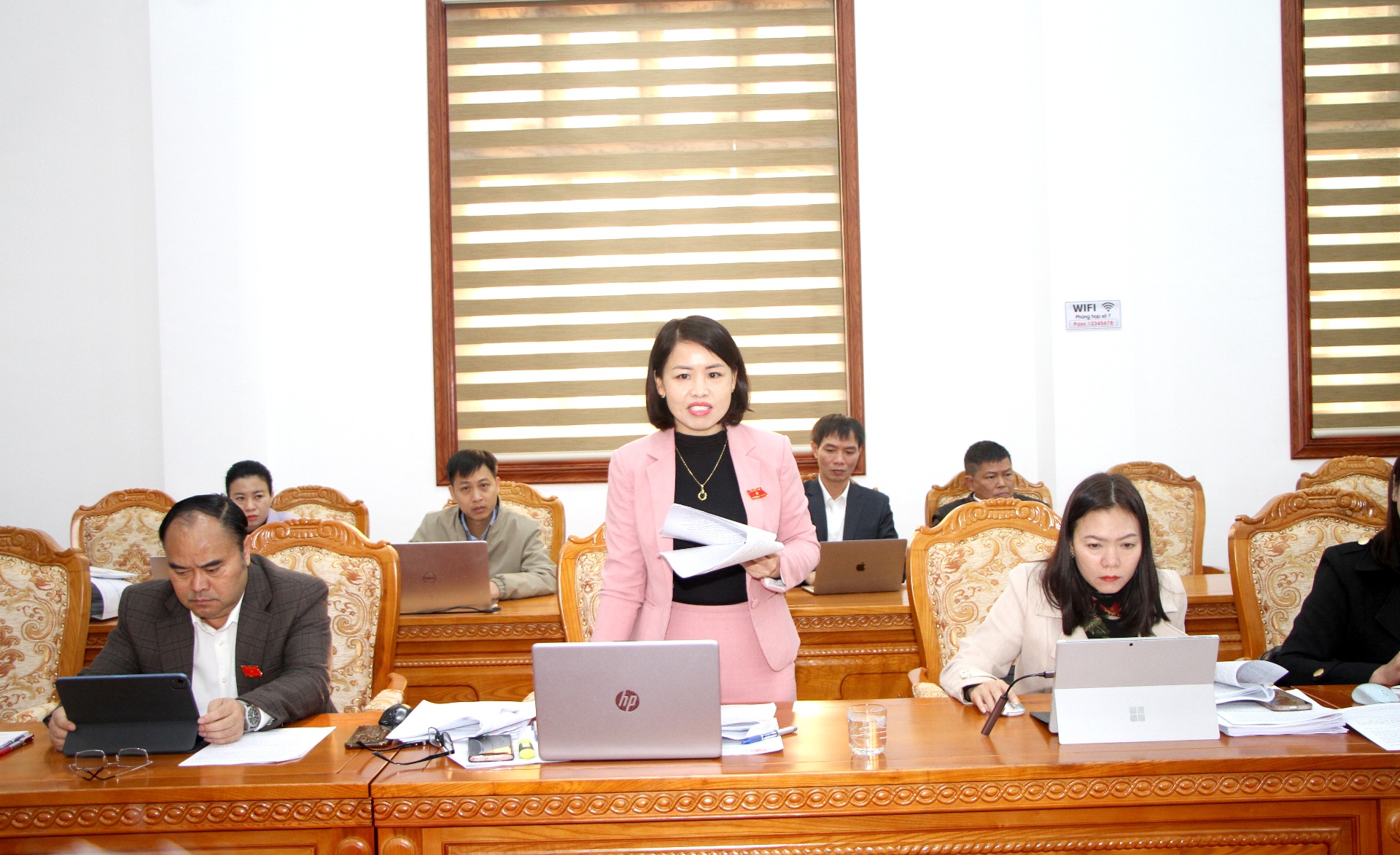 Đại biểu Chang Phương Thảo - Phó trưởng Ban Pháp chế HĐND tỉnh tham gia ý kiến tại Tổ thảo luận số 4.