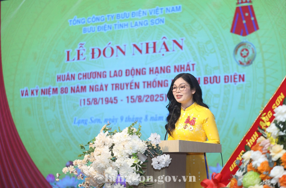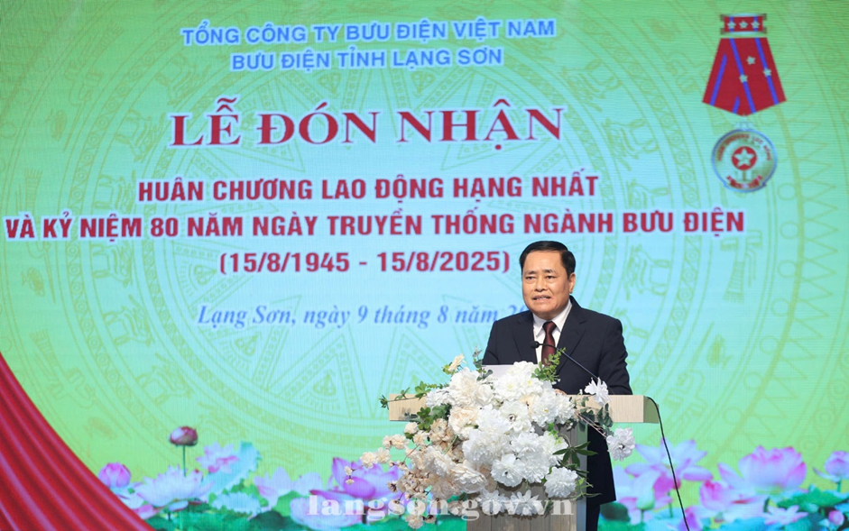 Sáng 09/8/2025, Bưu điện tỉnh Lạng Sơn long trọng tổ chức Lễ đón nhận Huân chương Lao động hạng Nhất và kỷ niệm 80 năm ngày truyền thống ngành bưu điện (15/8/1945-15/8/2025).