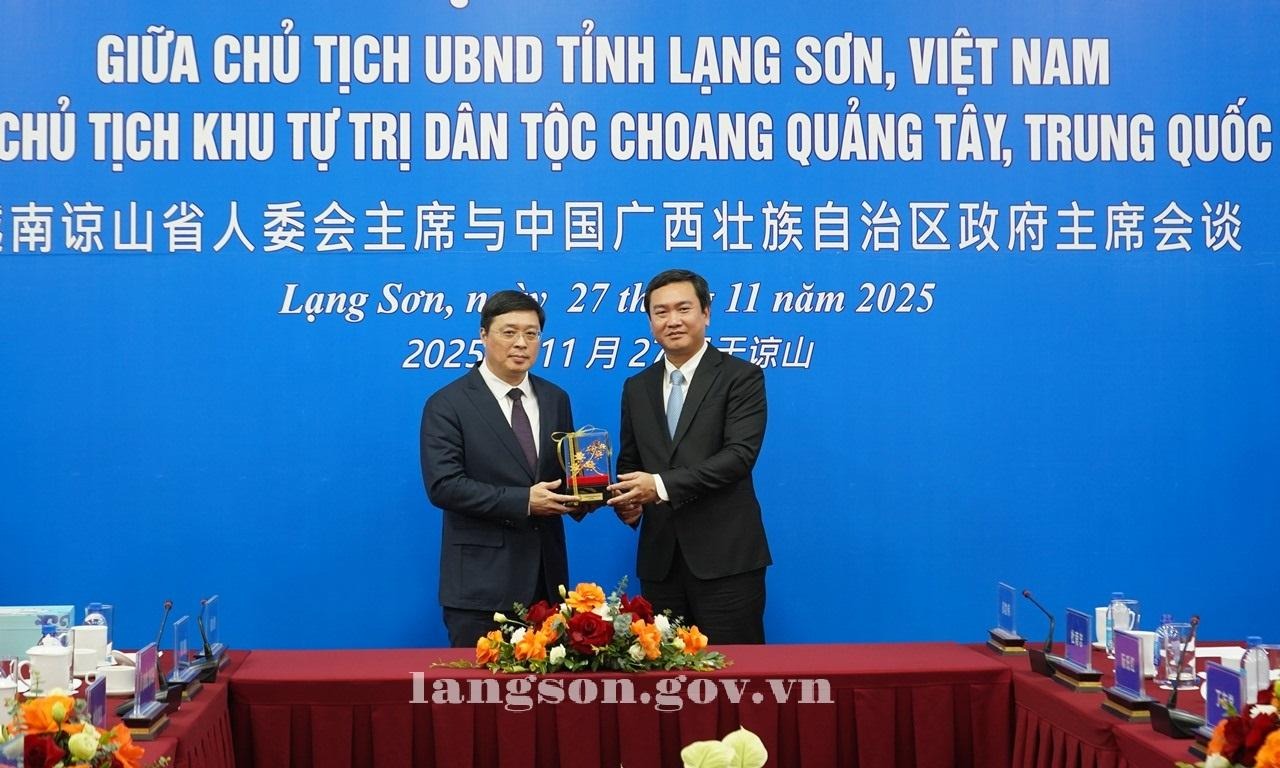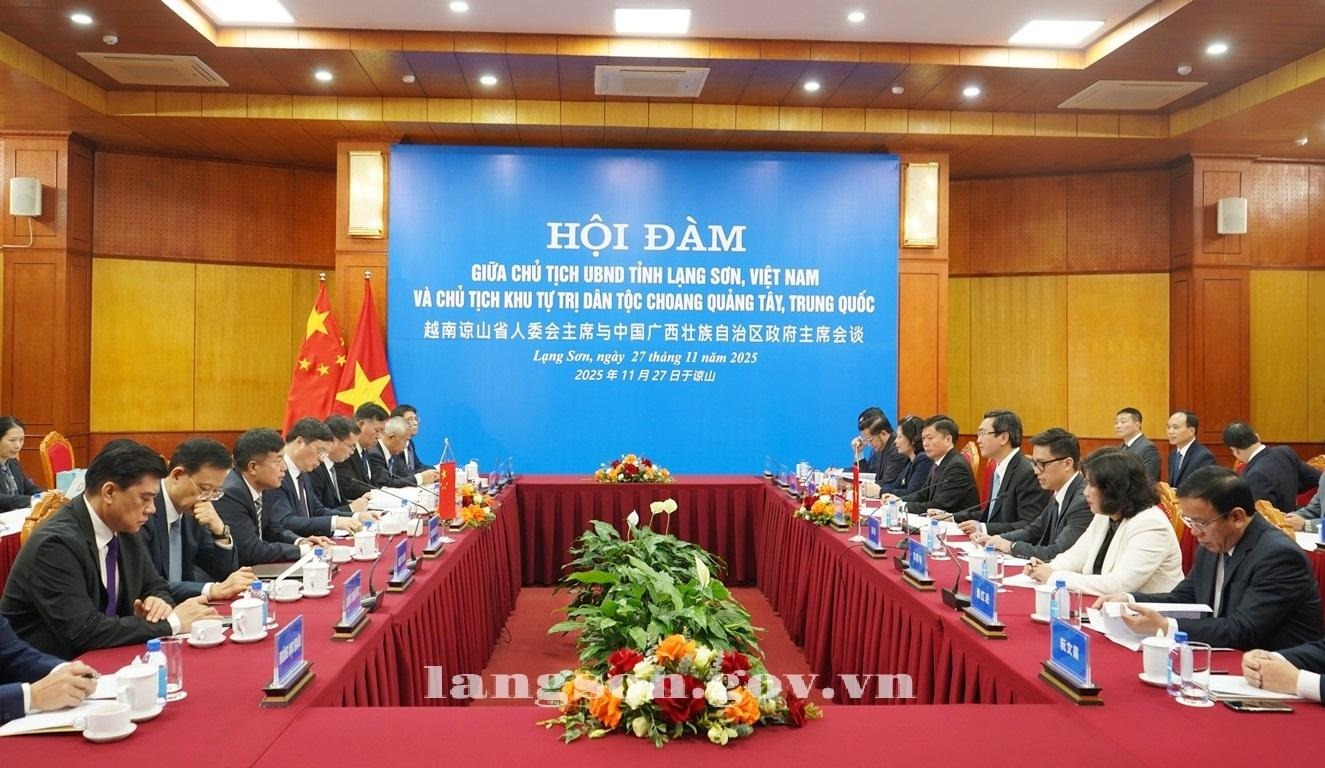 Chiều 27/11/2025, tại trụ sở UBND tỉnh, đồng chí Nguyễn Cảnh Toàn, Phó Bí thư Tỉnh ủy, Chủ tịch UBND tỉnh Lạng Sơn đã hội đàm với đồng chí Vi Thao, Ủy viên Ban Chấp hành Trung ương Đảng Cộng sản Trung Quốc, Chủ tịch Chính quyền Nhân dân Khu tự trị dân tộc Choang Quảng Tây (Trung Quốc). Cùng dự hội đàm về phía tỉnh có đồng chí Đinh Hữu Học, Ủy viên Ban Thường vụ Tỉnh ủy, Phó Chủ tịch Thường trực UBND tỉnh, lãnh đạo các sở, ban, ngành và đại diện Bộ Ngoại giao, Tổng lãnh sự Việt Nam tại Nam Ninh (Trung Quốc).