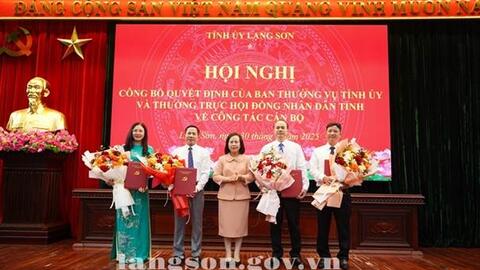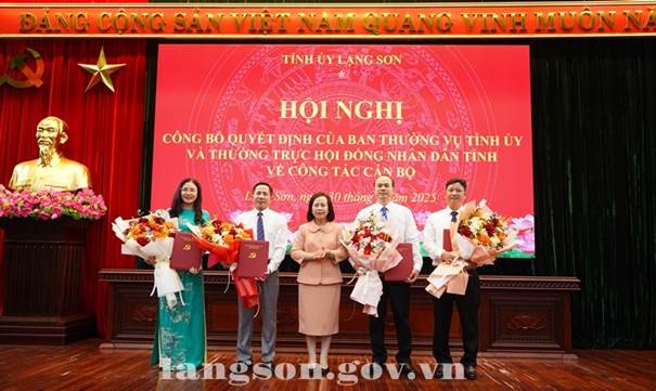 Tại hội nghị, đại diện lãnh đạo Ban Tổ chức Tỉnh uỷ đã công bố 04 Quyết định của Ban Thường vụ Tỉnh uỷ và Thường trực HĐND tỉnh về công tác cán bộ. Cụ thể: đồng chí Nguyễn Văn Trường, Tỉnh uỷ viên, Phó Chủ tịch HĐND tỉnh, Bí thư Đảng uỷ, Chủ tịch HĐND xã Na Sầm thôi tham gia Ban Chấp hành, Ban Thường vụ và thôi giữ chức vụ Bí thư Đảng uỷ, Chủ tịch HĐND xã Na Sầm, phân công, điều động đến nhận công tác tại HĐND tỉnh để đảm nhiệm chức vụ Phó Chủ tịch HĐND tỉnh; bổ nhiệm đồng chí Nguyễn Văn Hải, Trưởng phòng Tổ chức đảng, đảng viên, Ban Tổ chức Tỉnh uỷ giữ chức vụ Phó Trưởng Ban Tổ chức Tỉnh uỷ; bổ nhiệm đồng chí Liễu Mạnh Hiền, Trưởng phòng Tổng hợp, Văn phòng Tỉnh uỷ giữ chức vụ Phó Chánh Văn phòng Tỉnh uỷ; bổ nhiệm đồng chí Đinh Thị Phương, Trưởng phòng Công tác HĐND thuộc Văn phòng Đoàn đại biểu Quốc hội và HĐND tỉnh giữ chức vụ Phó Chánh Văn phòng Đoàn đại biểu Quốc hội và HĐND tỉnh. Các quyết định có hiệu lực kể từ ngày 01/8/2025, thời hạn bổ nhiệm là 05 năm.