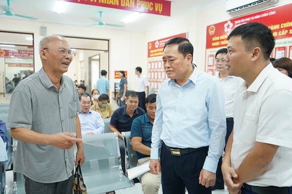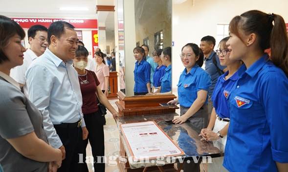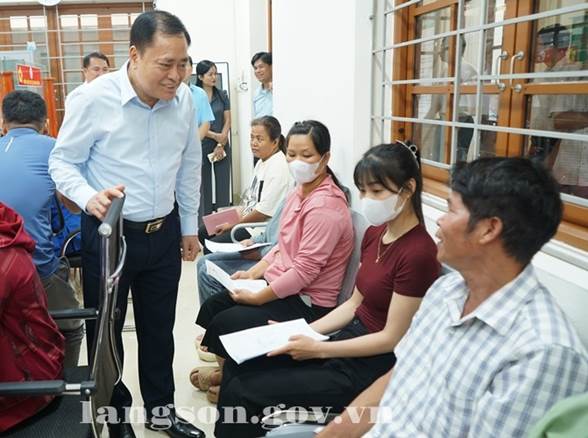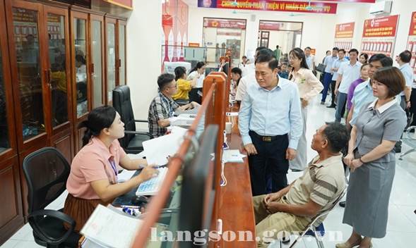 Đồng chí Chủ tịch UBND tỉnh thăm hỏi người dân đến giải quyết thủ tục hành chính tại Trung tâm Phục vụ hành chính công xã Hữu Lũng
