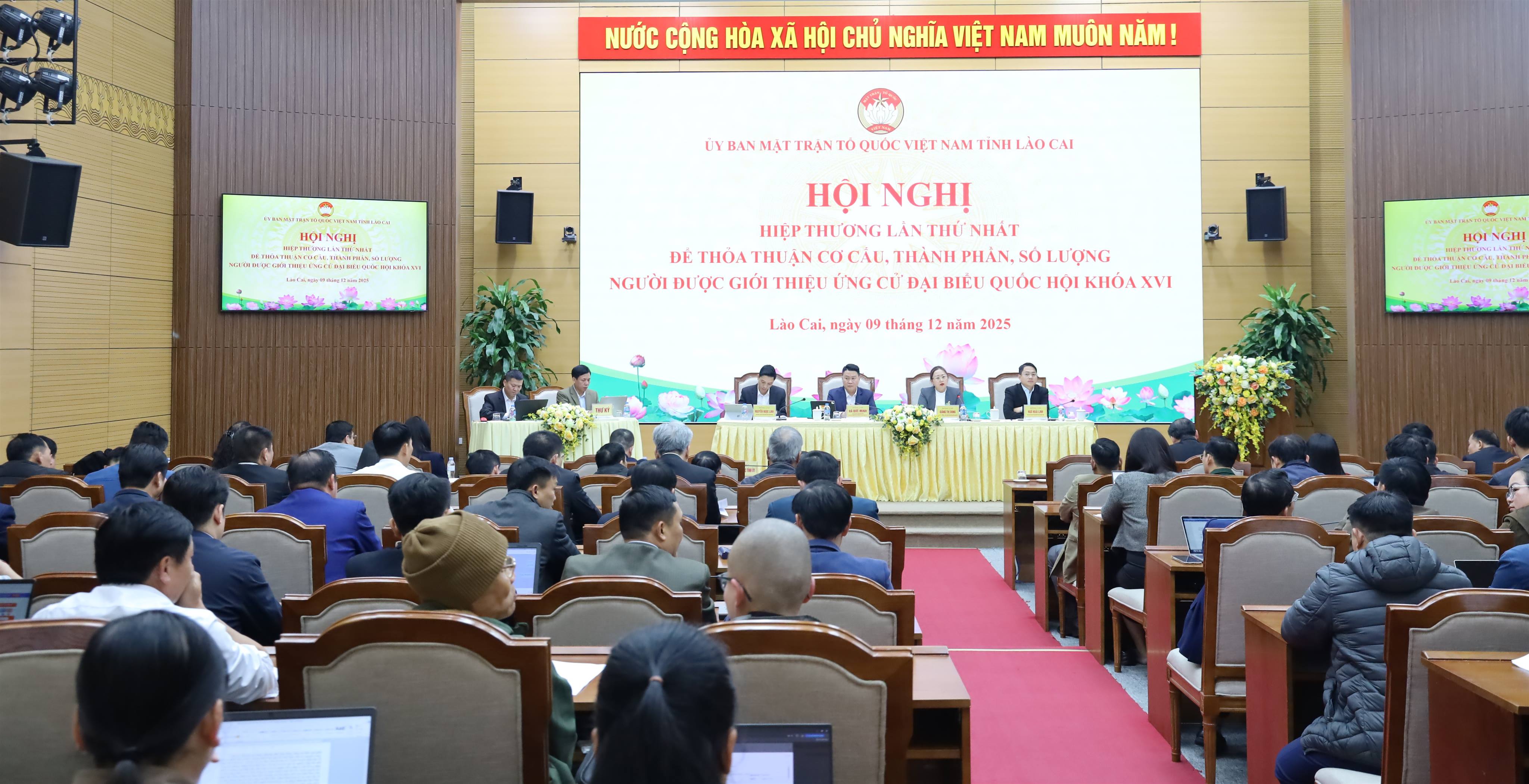 Tiếp đó, Ủy ban MTTQVN tỉnh Lào Cai đã tổ chức Hội nghị hiệp thương lần thứ Nhất để thỏa thuận cơ cấu, thành phần, số lượng người được giới thiệu ứng cử đại biểu HĐND tỉnh Lào Cai khóa XVII, nhiệm kỳ 2026 - 2031. Đồng chí Giàng Thị Dung, Phó Bí thư Tỉnh ủy, Chủ tịch Ủy ban MTTQVN tỉnh và các Phó Chủ tịch Ủy ban MTTQVN chủ trì Hội nghị. Dự Hội nghị có đồng chí Lý Bình Minh, Phó Chủ tịch HĐND tỉnh.