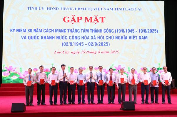 Nhân dịp kỷ niệm 80 năm Cách mạng Tháng Tám thành công và Quốc khánh 2/9 (02/9/1945-02/9/2025), chiều ngày 29/8/2025 tại Trung tâm Hội nghị tỉnh (phường Cam Đường), Tỉnh ủy, HĐND, UBND, Ủy ban MTTQ tỉnh Lào Cai tổ chức gặp mặt các nguyên lãnh đạo chủ chốt của tỉnh, người có công, gia đình chính sách tiêu biểu.