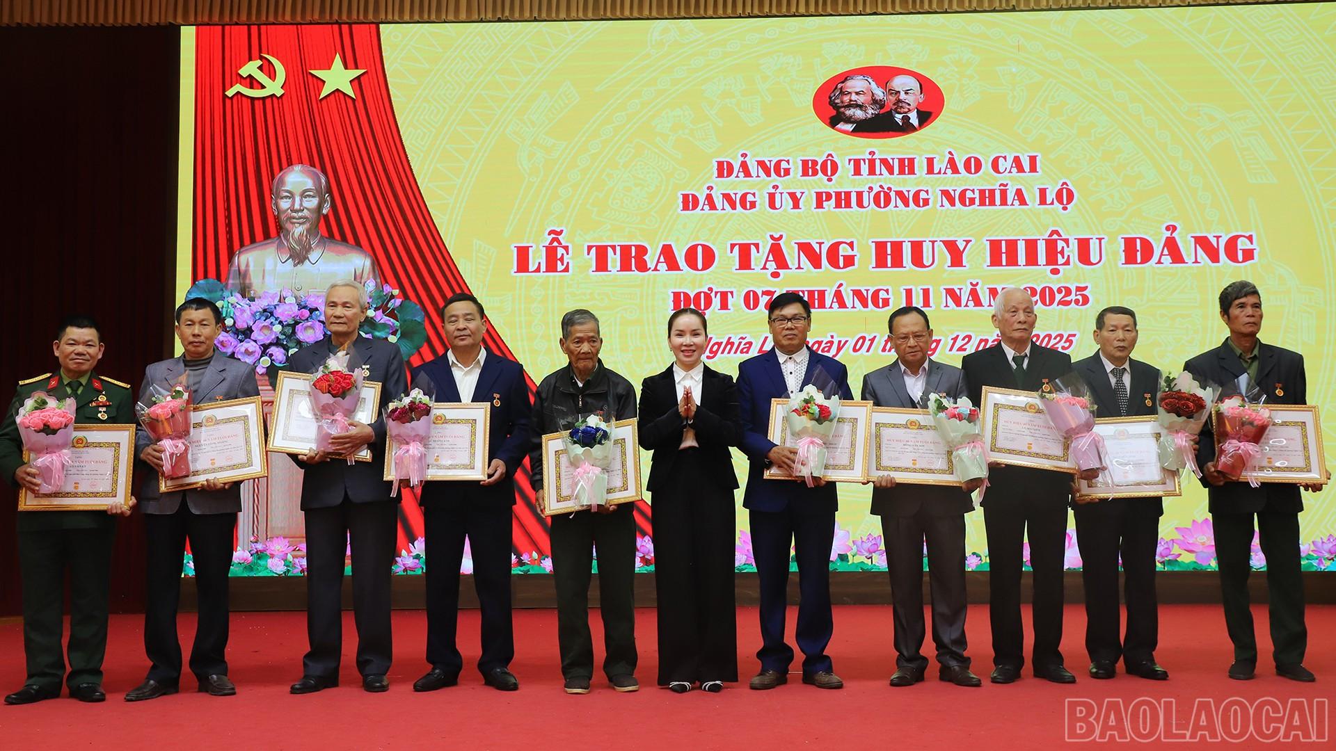 Ngày 1/12, Đảng ủy phường Nghĩa Lộ trang trọng tổ chức Lễ trao Huy hiệu Đảng đợt 7/11 cho 34 đảng viên đang sinh hoạt tại các chi bộ trên địa bàn. Đây là sự kiện có ý nghĩa chính trị sâu sắc, thể hiện sự trân trọng, ghi nhận của Đảng đối với những đóng góp to lớn của các đảng viên trong suốt quá trình công tác, cống hiến cho sự nghiệp cách mạng của Đảng, của dân tộc và của địa phương.