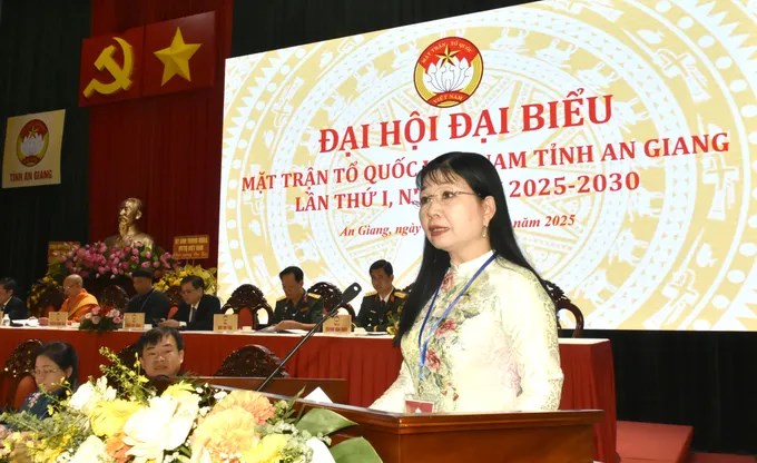 Phát biểu khai mạc đại hội, bà Trần Thị Thanh Hương nhấn mạnh, với phương châm “Đoàn kết - Dân chủ - Đổi mới - Sáng tạo - Phát triển”, đại hội là dấu mốc quan trọng, thể hiện ý chí, khát vọng và quyết tâm của khối đại đoàn kết toàn dân tộc tỉnh An Giang trong giai đoạn phát triển mới.