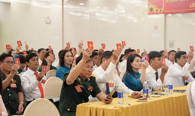 | Đại biểu tiến hành biểu quyết tại Đại hội |
