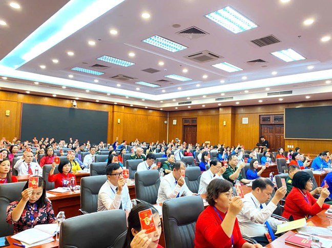 | Đại biểu tiến hành biểu quyết tại Đại hội |